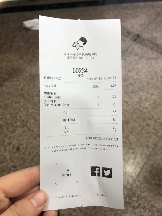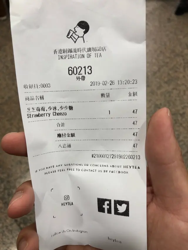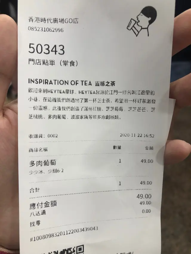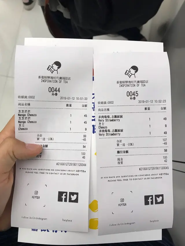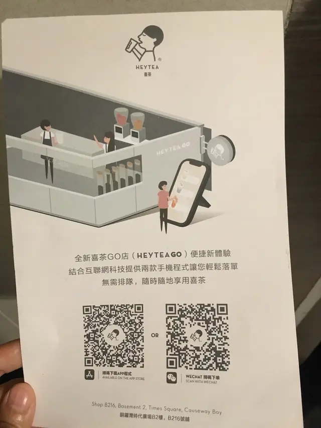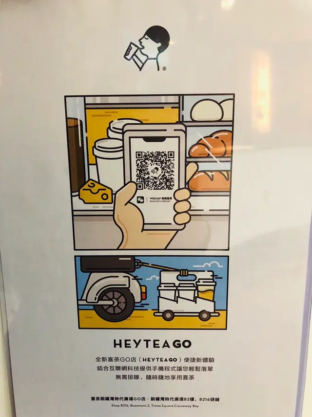 喜茶 (時代廣場) (銅鑼灣) 網址: https://s.openrice.com/QrbS0eq8900 地址: 香港銅鑼灣勿地臣街1號時代廣場B2樓B216號舖 電話: +852 31062996