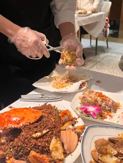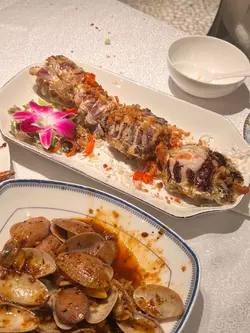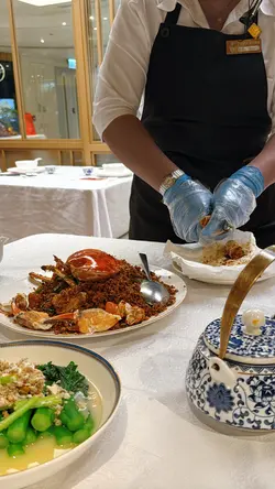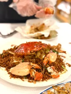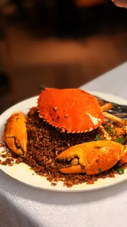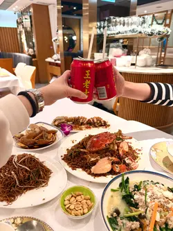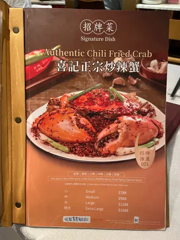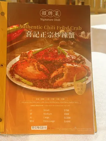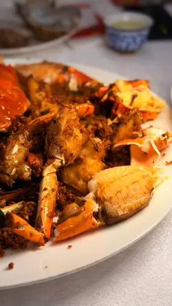 這間餐廳非常地道及有風味~店員有禮,而且環境又大又乾淨~仲有好多遊客及本地客光顧的~有天來吃一頓美味海鮮餐。這間餐廳的蟹十分出名。看到每一台食客都必會點蟹。蟹都有多種不同烹調煮法,有避風塘蟹、薑蔥炒蟹、蛋白花雕蒸蟹、沙茶粉絲肉蟹煲、黃金蟹等等,蟹仲可以自選大細。今天叫了一隻細細的黃金蟹~賣相相當吸引,金黃色的外皮,香脆惹味,鹹蛋味充足。雖然細份量的蟹,但是蟹都非常大隻。餐廳已把蟹斬成了一件件方便食用,而且還有店員會幫忙剝蟹,真的是貼心服務,這樣不用花氣力和弄污糟雙手都能吃到啖啖蟹肉。黃金蟹外皮惹味,中間的蟹肉鮮甜無比啖喔肉超滿足。十分喜歡這餐廳的蟹宴。除了蟹之外,我們還點了椒鹽富貴蝦,富貴的瀨尿蝦大大隻相當吸引,我都是第一次吃那麼大個子的瀨尿蝦,當我在擔心不知道怎樣剝殼,店員提供貼心服務會把蝦殼清理好,然後便可以啖啖肉吃。瀨尿蝦鮮甜無比,肉質厚實爽口彈牙,啖啖肉超豐富,令人十分難忘的巨大瀨尿蝦。招牌蟹油炒麵,看似平平無奇的炒麵,當把炒麵放入口中,蟹味香濃,炒麵十分惹味,令人一試便愛上,而且炒麵份量也很多,非常抵吃。油鹽水浸蜆,看到超多蜆~蜆肉鮮甜,而且仲有粉絲,粉絲吸入了鮮甜蜆肉味道,仲有鮮甜的湯汁,粉絲非常可口美味。吃飽飽豐富晚餐還有甜點贈送,是日提供了番薯糖水。番薯糖水甜度適中,番薯軟糯~非常滋潤清甜~正。下次又可以再約朋友來吃~試一試其他菜式~…查看更多