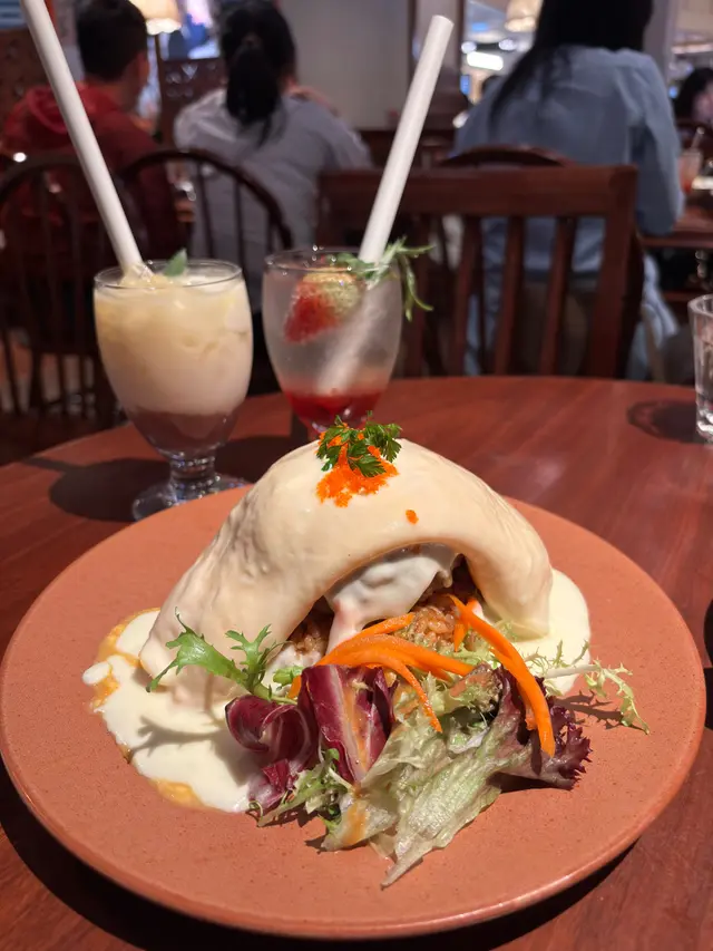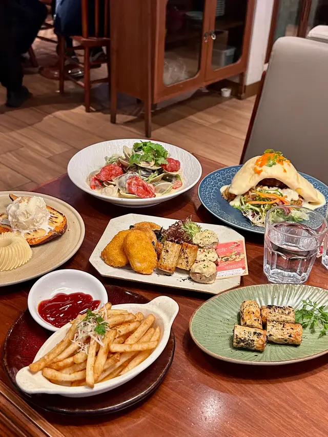 通常都是去銅鑼灣的喫茶ちょうぼ,尖沙咀店還是頭一回𖠚ᐝ同樣滿滿昭和風的裝潢,有如置身於一本故事書中臨近聖誕,店內已經佈置了不少聖誕裝飾🎄⧐ What we ordered ⧏白雪椿芝士蛋包飯 HK$166暖洋芝士燒竹輪卷 HK$48和洋酸忌廉辣肉腸‧大蜆鍋配香草薯條 HK$155喫茶特製・白雪の椿小食盛 HK$128噹噹雪降草莓沙冰 HK$56和香芋泥米麻薯牛乳茶 HK$58❄️白雪椿芝士蛋包飯來到喫茶ちょうぼ一定要吃蛋包飯ᵎ ᵎ ᵎ厚蛋上面有淡淡的芝士醬,下面有一大塊漢堡肉♡而且是炒飯底,很滿足的一個蛋包飯ദ്ദി ·͜·➿暖洋芝士燒竹輪卷竹輪卷上面是滿滿的海苔碎,所以吃著特別香,竹輪愛好者必試!🍟和洋酸忌廉辣肉腸‧大蜆鍋配香草薯條蜆肉每顆都很大,搭配酸忌廉汁很好吃!薯條也是炸得香脆,這個小食份量很多,特別適合和朋友一起分享~🍱喫茶特製・白雪の椿小食盛小食拼盤很豐富,每款都很不錯,特別喜歡芝士年糕和忌廉可樂餅,這個小食盛兩三個人一起分享剛剛好~🍓噹噹雪降草莓沙冰來琴冬季,代表又是草莓的季節了草莓沙冰味道好香甜🍧還有一小片草莓作點綴♡🧋和香芋泥米麻薯牛乳茶芋泥配牛乳是無敵的的組合,再加上軟軟糯糯的麻薯真是不得了!這杯不太甜很好喝~…查看更多