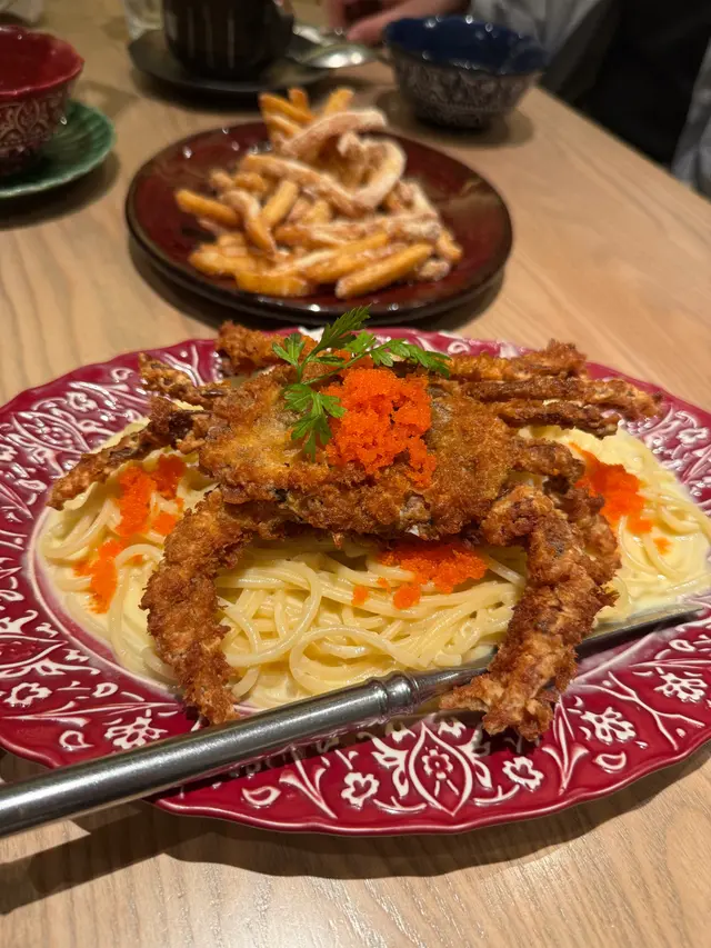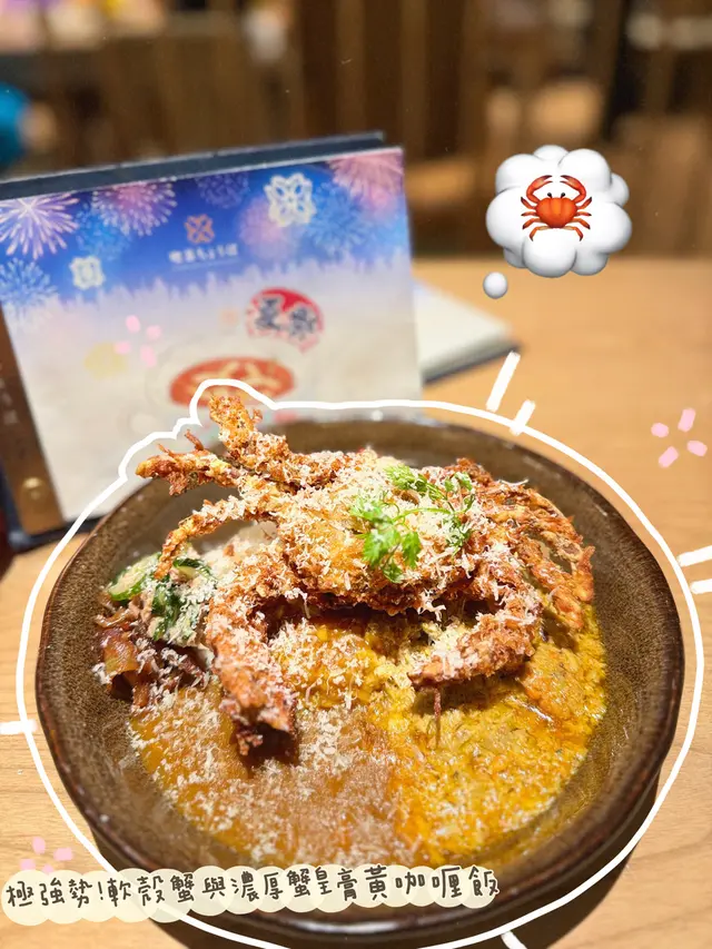 期待已久嘅食蟹季節又到了。今次去咗喫茶ちょうぼ,新菜單有蟹皇膏、蟹旨膏加入菜式,唔使”郁”手都有啖啖鮮甜蟹肉蟹膏品嘗!🦀極強勢!軟殼蟹與濃厚蟹皇膏黃咖喱飯軟殼蟹酥脆內嫩,易咬開!蟹肉細緻鮮甜,無腥味。日式咖喱甘甜,今次仲加濃厚蟹皇膏,攪拌後超搭配!甜甘香,兩樣氣味都特顯!啖啖蟹嘅精華!🐔蟹旨膏醬唐揚炸雞一層薄薄嘅麵粉,香口薄脆,雞肉彈牙爽口又多汁,唐揚炸雞鬆脆無油膩感,雞皮沒有半點油脂,大啖食真係有啲罪惡感!而最邪惡係蟹旨膏醬,金黄色仲有粒粒蟹膏,甘香又鮮味,忍唔住食勁多醬,兩樣配搭相當有新鮮感!🍝屋台風蒜香貝殼意粉麵條煙韌適中,保留口感!蒜香🧄惹味,加上沙白及青口,海鮮鮮甜與蒜香!🎃 完熟南瓜!濃香芝士蛋糕南瓜清甜,香氣獨特!芝士蛋糕順滑,唔太甜配上一口南瓜兩種口味仲好夾,而且口感好輕盈,相信食完飯食都唔會太heavy! 🎐夏祭金魚梳打天藍色嘅梳打,係日系波子汽水味,加上精緻透徹嘅金魚造型啫喱糖,透心涼嘅感覺,有捉緊夏天嘅尾巴嘅感覺!🧡柿子香露酸甜嘅口味又帶啖啖柿子嘅味道,而且仲有柿子肉,雖然第一啖未必一飲就覺得係柿子,但香味慢慢透出來,越嚟越香!…查看更多