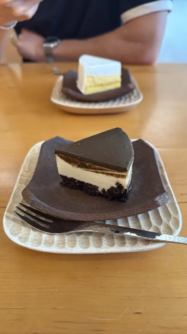 雙重朱古力慕絲蛋糕(前)、培茶巴斯克(後)— 定食套餐甜品(+$13)
