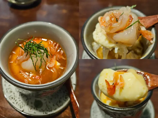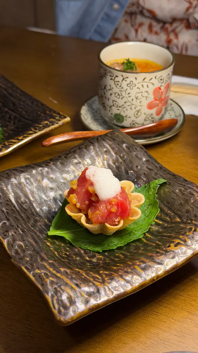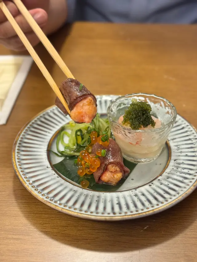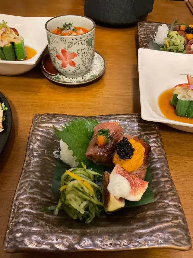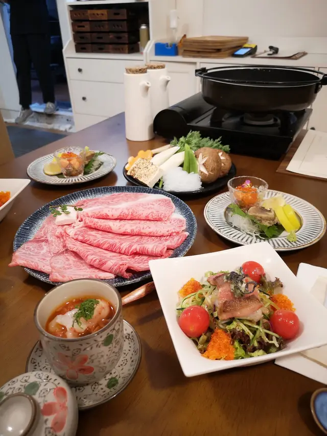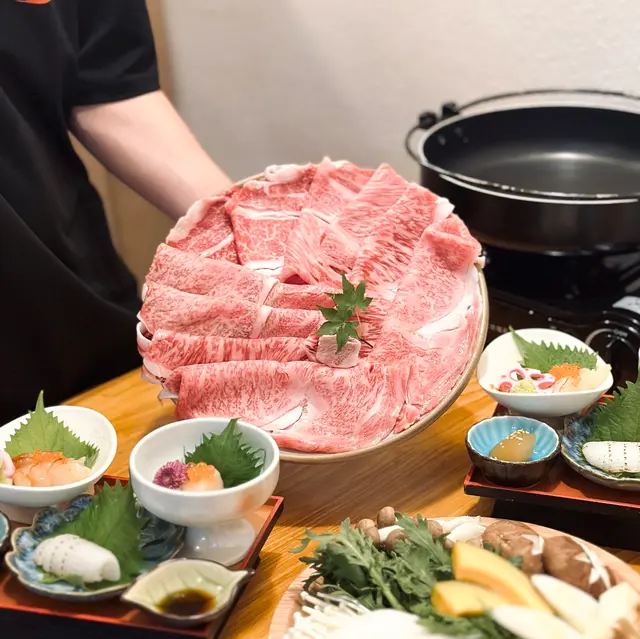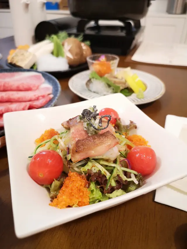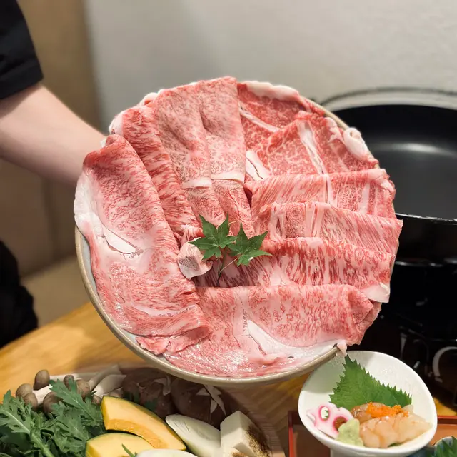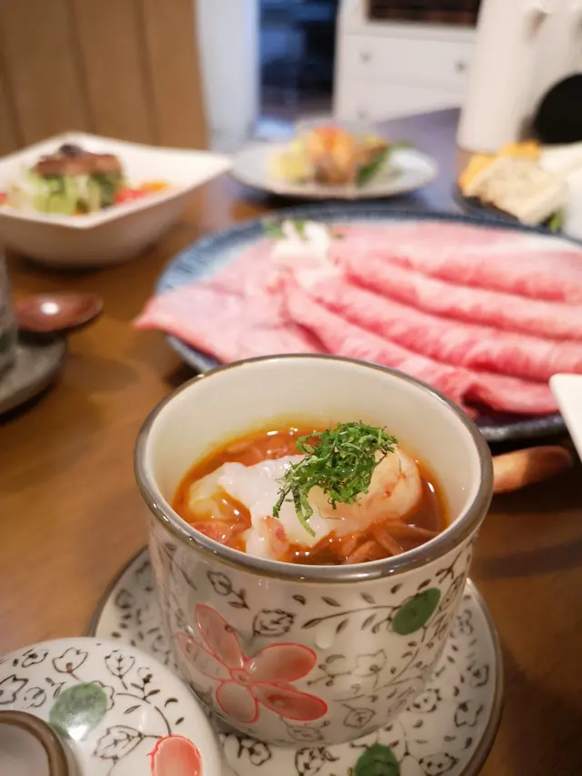 **前菜三重奏** 🎶 1️⃣ **牛舌沙律**:酸酸甜甜的醬汁撈埋嚟食超開胃😚!蕃茄仔係醃過的,微微酸甜中帶啲辣嘅蘿蔔仔,仲有厚身牛舌,好有咬口~🍅🌶️👅 2️⃣ **牛肉卷**:牛肉卷包住調味完美嘅三文魚蓉,仲加埋三文魚籽同魚子,咬落去每一啖都係幸福💖~絕對係口感與味道嘅雙重享受!🐟🥩🍱 3️⃣ **櫻花蝦茶碗蒸**:一開蓋就有陣蝦膏香撲鼻而來🦐🌸,蛋滑得冇朋友,仲有蟹柳、菇菇做配料,好豐富~✨🍄🍳---**壽喜燒主菜登場!** 🎉 呢度嘅和牛係來自宮崎県,係大廚精心挑選嘅三個部位:肉眼、西冷同牛肩~ 😍🥩 - **肉眼**:入口即溶,油花分佈得好完美,真係享受~🤤 - **西冷**:有啲絲絲分明嘅肉質口感,食得出啲層次感~💯 - **牛肩**:牛味最濃郁,香氣十足,係我地嘅最愛!💕而最後仲可以再揀多個部位追加,我地梗係加返牛肩啦!🔥🐂 同埋唔好忽略啲蔬菜,真係個個都🔥🔥🔥烤得啱啱好!食牛肉點蘭王蛋再配埋烤菜,層次感即刻升到天花板🌟~🥚🥬---**清湯時間!** 🍲 食完牛肉之後,店員會送上一碗**舞茸海鮮清湯**,湯底清澈見底,入面有貝柱同蜆肉,鮮味滿分!🥰飲完清湯,整個口腔重拾清爽~🦪🌊---**甜品壓軸!** 🍮🍨 最後嘅甜品真係有驚喜! - **豆腐雪糕**:有淡淡嘅豆香味,清新得嚟唔會太甜~👍 - **日式布甸**:Q彈嫩滑,好似喺口度跳舞咁🕺~甜度啱啱好,完美收結!😋💕---總結:呢餐真係一個視覺同味覺嘅雙重享受,每一個細節都好認真,服務態度一流👏,絕對值得再嚟~💯🎉…查看更多