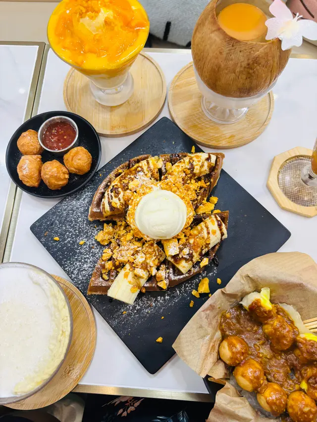 新品登場‼️ 焦糖脆脆粟米忌廉窩夫高質人氣甜品店💖同好友食完飯後諗住去食返個靚甜品,竟然撞到佢哋推岀新窩夫,真係超lucky✌🏻✌🏻😍高質又好食,一定要同大家講吓。✨焦糖脆脆粟米忌廉窩夫✨大大力推介呢款新登場嘅焦糖脆脆粟米忌廉窩夫,配埋雲呢拿雪糕一齊食真係爽到飛起!面頭灑滿香脆焦糖粒粒,窩夫入面藏咗啲粒粒飽滿嘅粟米同麻糬😍食落口感層次超豐富,麻糬煙靭彈牙,味道唔會死甜,沾上像淡淡粟米湯嘅鮮甜醬,真的好滋味,令人忍唔住一口接一口。✨桃膠雪燕椰皇✨超驚喜❤️ 原個椰皇香味濃郁,非常嫩滑。桃膠份量十足,仲好大粒,口感滑潤又滋潤,超級養顏又健康。✨波波拼盤✨真係多款小食集合,內有炸花枝丸,炸燒賣及粗身炸薯條,超正。炸花枝丸非常大粒兼彈牙,燒賣香氣十足,薯條粗切有咬感,整體非常不錯。如你同我一樣,心多多,咩都想食D,呢款就啱晒❤️✌🏻甜品創意十足,定期有新作,食材新鮮真材實料,無論係口感定味道都做到高質,絕對係甜品控必去打卡熱點!想睇更多介紹,馬上Follow我啦😁。#嘆甜品 #甜品 #屯門 #屯門美食 #香港美食 #香港甜品店 #香港甜品 #維他奶 #椰皇 #foodie #屯門好去處 #甜品控 #窩夫 #雪糕 #創意甜點 #炸花枝丸 #宵夜 #人氣美食 #香港美食 #香港必食 #香港探店 #香港打卡 #香港旅遊 #香港必喝 #屯門探店 #香港好去處 #美食日記 #探店 #big_big_foodie #big_big_foodie食勻屯門 #big_big_foodie食勻香港 …查看更多