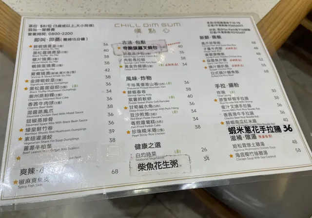 今日相約朋友去沙田馬場盡興一番,在這之前朋友帶我去了沙田廣場,地下一間並不起眼而又做得很出色的點心店食早餐。店舖已木色系列為主,簡潔舒適,坐低我哋便用電話掃code點餐。我哋三個人叫了六個點心,其中最有驚喜的藤椒蝦餃,一口咬落去,蝦肉鮮甜彈牙而且有爆汁的感覺,藤椒味突出但又不失蝦肉的鮮味,超正。鮮蝦南瓜紅米腸也是值得推介,紅米腸爽滑帶少許煙韌,一口咬落讓入炸兩內又多到滿瀉的蝦膠,外脆內彈牙,在淋上少許秘製醬油,口感層次超級豐富。每次去飲茶必叫的鹹水角。這碟甘筍鹹水角造型超可愛。皮薄餡料很多,最重要係鹹水角的皮咬落不會黐牙,而且非常酥脆軟糯,一點也不會油膩。這籠黑松露雜菌菇餃,一上枱便很吸睛,外皮晶瑩通透,爆多的菇菌餡料加上濃郁的松露,味道超香,是一道很好食的素餃。混醬蒸鳳爪跟一般茶樓食的無乜分別,好難會唔好食,但這店的味道都唔錯。呢碟千絲萬僂淮山卷,個名同實物點心一樣真係千𢇁萬僂,一咬落去特別脆口,小心散落到枱面都係千絲,包住的淮山粉糯,兩者配搭都幾夾,實在創意有加。入嚟店舖之前見到門口餐牌有$45的一人點心孖寶,選擇很多,價錢超底,不過只限早市及下午茶,有機會來一定試吓。…查看更多