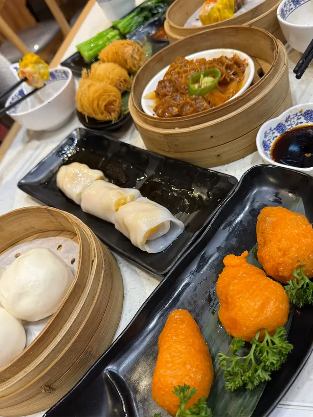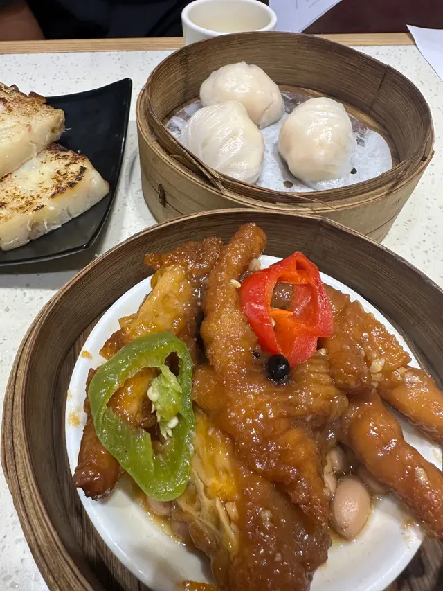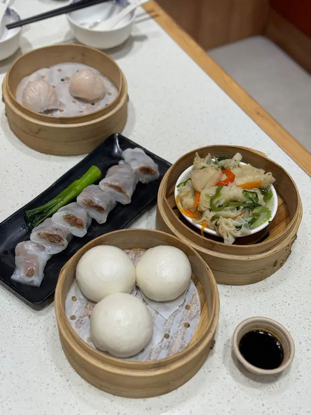 今日相約朋友去沙田馬場盡興一番,在這之前朋友帶我去了沙田廣場,地下一間並不起眼而又做得很出色的點心店食早餐。店舖已木色系列為主,簡潔舒適,坐低我哋便用電話掃code點餐。我哋三個人叫了六個點心,其中最有驚喜的藤椒蝦餃,一口咬落去,蝦肉鮮甜彈牙而且有爆汁的感覺,藤椒味突出但又不失蝦肉的鮮味,超正。鮮蝦南瓜紅米腸也是值得推介,紅米腸爽滑帶少許煙韌,一口咬落讓入炸兩內又多到滿瀉的蝦膠,外脆內彈牙,在淋上少許秘製醬油,口感層次超級豐富。每次去飲茶必叫的鹹水角。這碟甘筍鹹水角造型超可愛。皮薄餡料很多,最重要係鹹水角的皮咬落不會黐牙,而且非常酥脆軟糯,一點也不會油膩。這籠黑松露雜菌菇餃,一上枱便很吸睛,外皮晶瑩通透,爆多的菇菌餡料加上濃郁的松露,味道超香,是一道很好食的素餃。混醬蒸鳳爪跟一般茶樓食的無乜分別,好難會唔好食,但這店的味道都唔錯。呢碟千絲萬僂淮山卷,個名同實物點心一樣真係千𢇁萬僂,一咬落去特別脆口,小心散落到枱面都係千絲,包住的淮山粉糯,兩者配搭都幾夾,實在創意有加。入嚟店舖之前見到門口餐牌有$45的一人點心孖寶,選擇很多,價錢超底,不過只限早市及下午茶,有機會來一定試吓。…查看更多