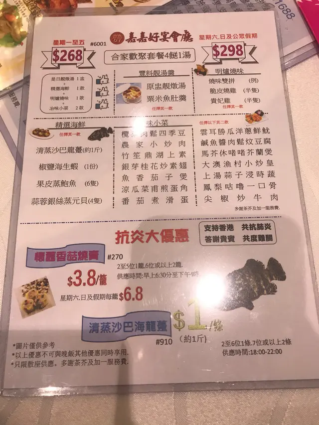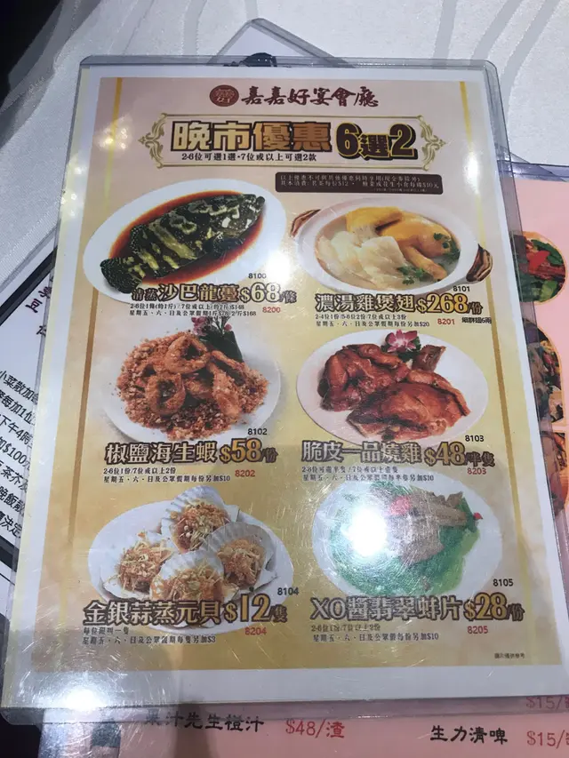 嘉嘉好宴會廳 Joy and Harmory Banquet📍 元朗西菁街10號好順泰大廈1樓2號舖是日屋企無食水供應,於是全家總動員落咗元朗搵食,因為周圍都好多人,好多餐廳都排晒長龍,我個鍾意食中菜嘅老豆就話去酒樓食啦,又坐得舒服啲,於是就嚟咗嘉嘉好食啦。[價錢 Price] 💰$68七味蒜香九肚魚 🐟已經勁耐無食過九肚魚喇,嚟過元朗都知大排檔必食椒鹽九肚魚!呢間酒樓唔用椒鹽,選擇用七味粉撈炸蒜做調味,九肚魚嘅脆醬好香脆,每嚿都有返咁上下份量。佢嘅魚處理得唔錯,裏面嘅軟骨都可以食埋,魚肉好滑,點埋喼汁就一流啦![價錢 Price] 💰$98雪餅千島蝦球 🍤呢個菜式好搞鬼,以為係咩雪餅啦,點知上到嚟真係旺旺雪餅,我同屋企人都嘩咗一聲。唔好睇佢個樣咁搞笑啊,其實味道好好㗎,尤其係佢個千島蝦球,蝦肉好爽,千島醬鹹鹹甜甜咁,好開胃。佢每一嚿蝦頭上面都放咗一粒提子乾,成個combo睇落好怪、好似伏,但係真係唔錯㗎,如果價錢平返少少應該會有多啲人食。…查看更多