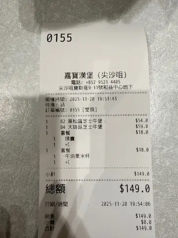 嘉寶漢堡(尖沙咀) @kabo.burger 📍:香港尖沙咀寶勒巷9-11號和益中心地舖🚗:尖沙咀地鐵N2出口 步行5分鐘📞:+852 9521-4405💲:~HKD80/head for dinnerFood quality✔️:黑松露芝士牛堡套餐👌🏼:烤菇芝士牛堡套餐、香辣孜然羊堡總結:😋本港陀地漢堡 食過葵涌分店同尖沙咀 穩定嘅品質 絕對係港式漢堡嘅代名詞之一😋我最喜歡💕佢嘅黑松露芝士牛堡套餐 牛扒雖然唔算厚但多汁 黑松露又好濃 食落啖啖肉心滿意足😋一定一定要讚佢杯薑蜜好好飲 出色過9成茶記 薑🫚同蜜糖比例一流🤔烤菇芝士牛堡套餐就相對普通啲 烤菇一定要咬落去爆汁 冇爆汁就弱咗啲🥺🤔香辣孜然羊堡 羊肉唔會羶 但孜然味就淡咗啲 不過羊肉有爆汁效果食落都juicy 好食嘅🤔薯條🍟就係粗直脆薯 有落少少鹽巴 熱辣辣上枱🤔除咗薯條外 比較健康嘅選擇就係粟米🌽如果有畀埋牛油會食得開心啲🤔炸燒賣就類似金龍較煙韌 唔係行魚肉味重嘅唔建議蘸蛋黃醬 唔太夾 炸得脆口但唔會太油小朋友會食得開心🤣🤔尖沙咀分店嘅裝修比較新穎衛生 我最喜歡佢有嗰位畀人洗手 簡直係良心 所以服務要加分😜…查看更多