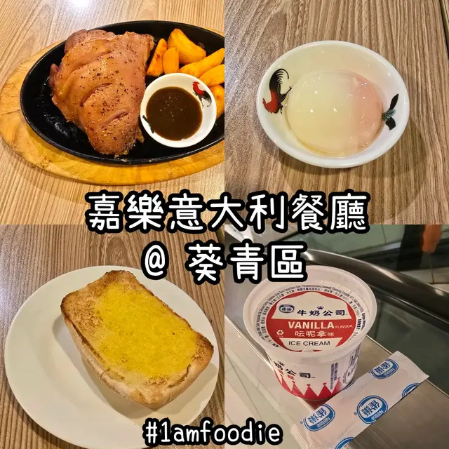 【葵青區】【嘉樂意大利餐廳】之前同家嚴想食葵芳呢間嘢,點知佢哋就嚟 last order 唔做我哋生意,之後就冇乜機會過嚟呢邊喇。始終本身都係貪呢度有美國冒險樂園可以玩,而家搬埋去新都會之後都唔知有咩動力過嚟呢邊喇。吖,一時忘記咗家嚴,可能真係要搵佢食飯先有機會再過嚟。不過我自己就過嚟呢度食咗先啦,上次食唔到硬係有啲可惜咁。去到見到真係比較少人,唔緊要,未食就唔知味道嘅。叫咗 $69 嘅「鐵板黑椒無骨豬手配薯角」,跟餐配「杯裝雪糕」同「熱朱古力」,加 $7 要咗「蒜蓉包」同加 $6 要埋「溫泉蛋」。主菜幾有薩莉亞 feel,尤其個鐵板,味道對得住價錢,薯角偏辣。餐飲可以,唔會好淡。蒜蓉包得牛油味,缺乏蒜香。溫泉蛋正正常常,冇特別。跟餐杯雪糕要埋單嗰陣問先記得,不過埋單 $82 係冇加一嘅,所以都唔 expect 會有好好服務,自己拎雪糕走啦。。。(地址:葵芳榮芳路9號恆景商場2樓205-206號舖)#1amfoodie #foodie #hkfoodie #hkfood #food #foodporn #instafood #followforfollowback #foodstagram #foodiesofinstagram #love #restaurant #foodblog #eat #1am葵青區 #葵芳 #嘉樂意大利餐廳 #鐵板黑椒無骨豬手配薯角 #杯裝雪糕 #熱朱古力 #蒜蓉包 #溫泉蛋 #1am1762 #1ambackup…查看更多