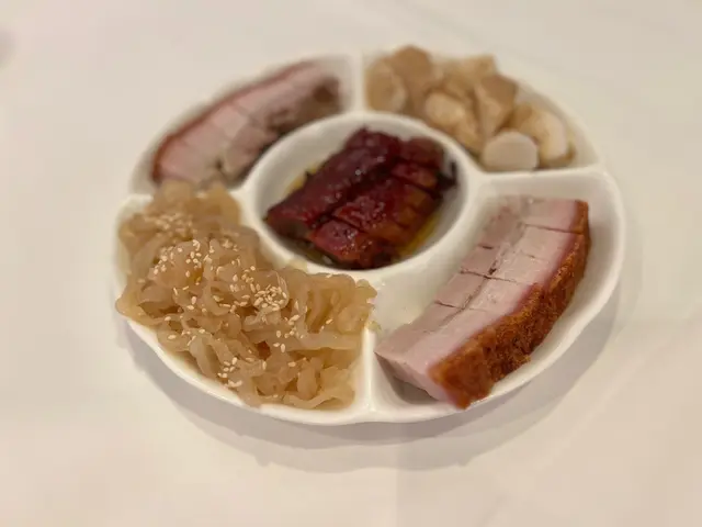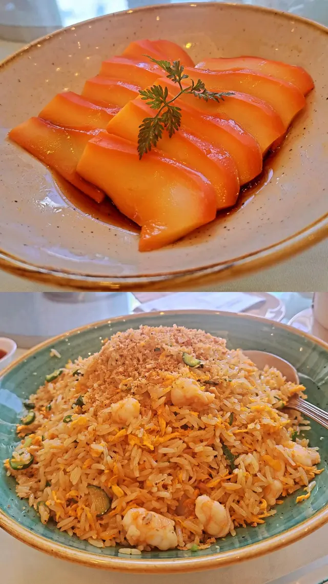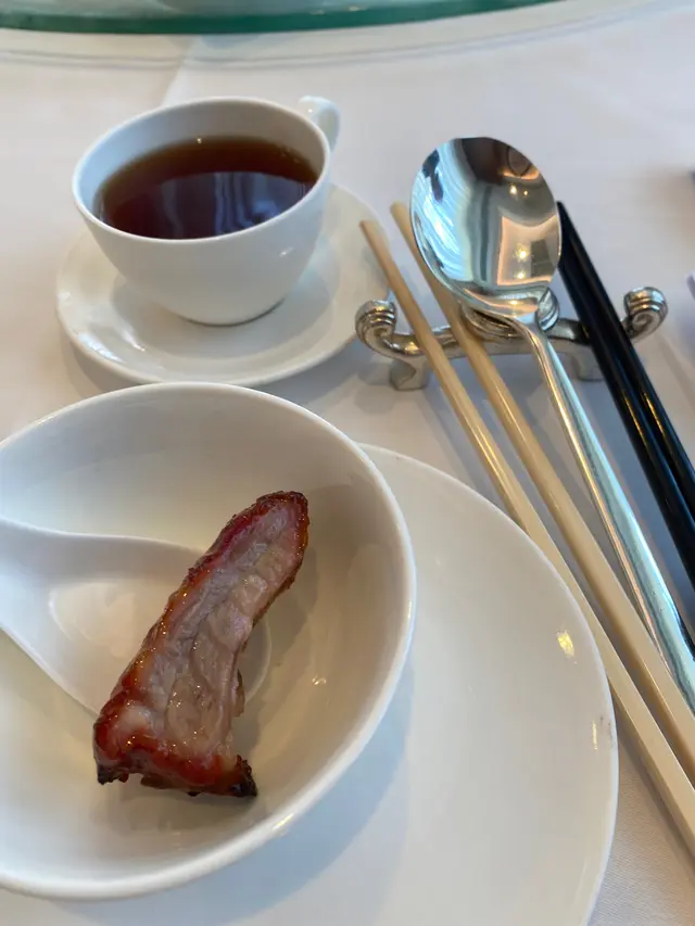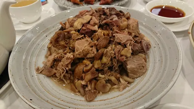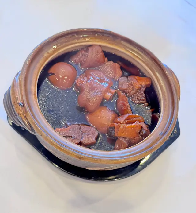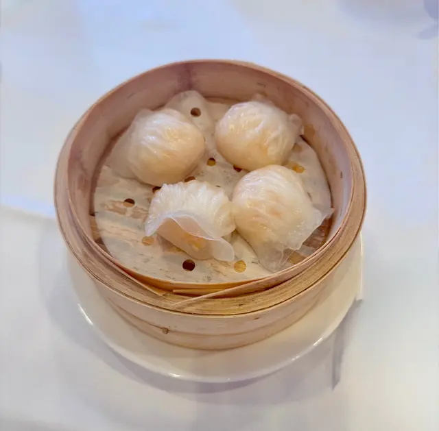 很有愛的長輩非常關心閨蜜,相約我們幾人一同茶聚。長輩經常在嘉樂樓飲茶,因此點心全由她發辦。蝦餃晶瑩剔透,皮薄餡靚,外皮軟中帶彈性,蝦仁飽滿味美,實是高手出品。燒賣皇雖然欠缺蟹籽,但質素依然上佳,餡料的豬肉瘦多肥少,與鮮嫩的蝦仁形成濃郁鮮味,甚合心意。芋角鬆脆不油,散發芋香,雞粒餡料很完整,不是雜碎肉屑撈作一團而成,餡料鹹香可口,與芋泥十分搭配。叉燒酥上桌的時候還在冒着熱氣,外皮鬆軟酥脆,以皮蛋和子薑搭配叉燒,除有趣之外,還令肉餡的味道多了層次。叉燒包柔軟蓬鬆,在內餡中加入菠蘿粒,不但能解叉燒的甜膩,更讓整個包子多了一絲果香。叉燒腸粉是第三款含叉燒的點心,可知長輩對這裡出品的叉燒有多鍾愛,叉燒腸的粉皮嫩滑富光澤,叉燒軟腍香甜,正好證明只要做得好,絕對不會感覺過多。魚雲十分飽滿,質地嫩滑細緻,魚雲吸收了子薑和豉椒的味道,不但毫無魚腥雜味,更激發了魚頭和魚雲獨有的魚肉鮮香。香醋豬腳薑的份量十分慷慨,最喜歡的是燜得發亮的薑塊和豬腳,香醋既酸且甜,味道都滲進了各種食材,吃罷滿滿膠質的豬腳和爽甜的薑塊,再喝一兩口香醋,開胃消滯。…查看更多