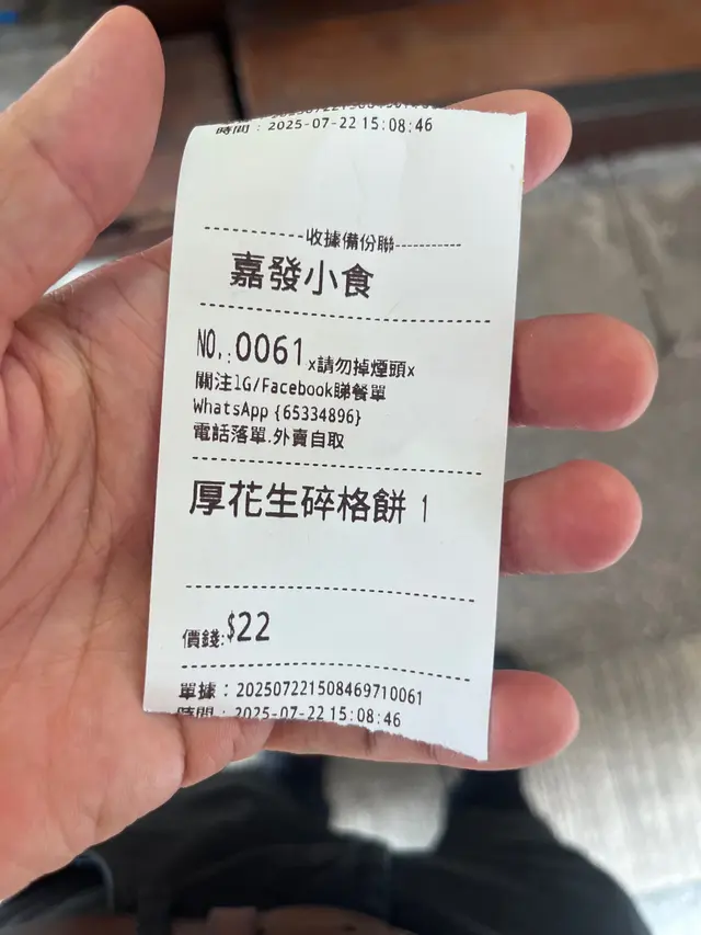 「 嘉發小食 」 元朗元朗人氣雞蛋仔;不過雞蛋仔同格仔餅;我會選擇格仔餅🫶🏻;佢有好多口味可以揀;我就揀左「 厚脆花生碎 $22 」;因為係即叫即整;所以熱辣辣一啖咬落去;真係外脆內軟勁多花生碎;醬料有牛油、煉奶、砂糖、芝麻、花生醬同花生粒….🧇我係黃昏時去食;人流未至於特別多;等左大概10分鐘左右就有啦~查看更多