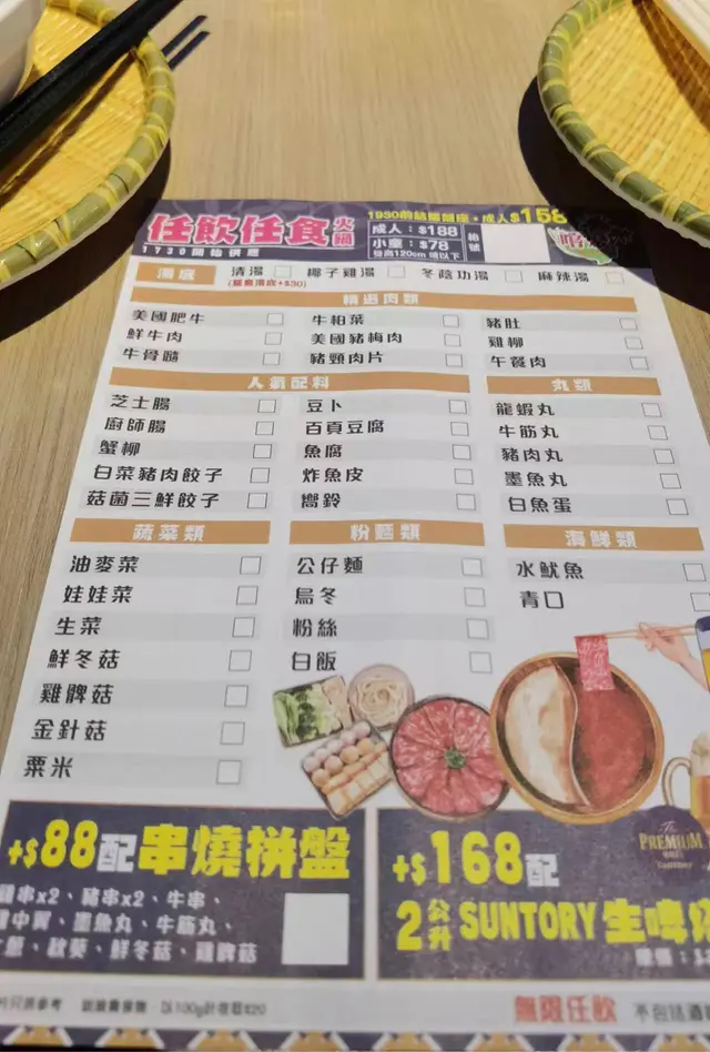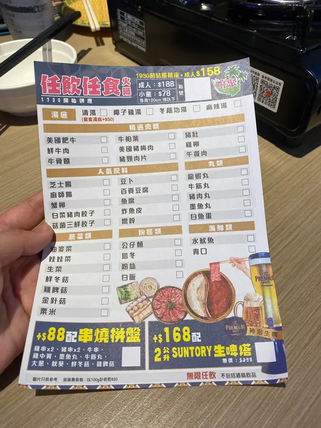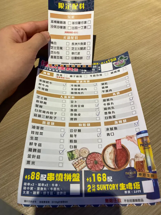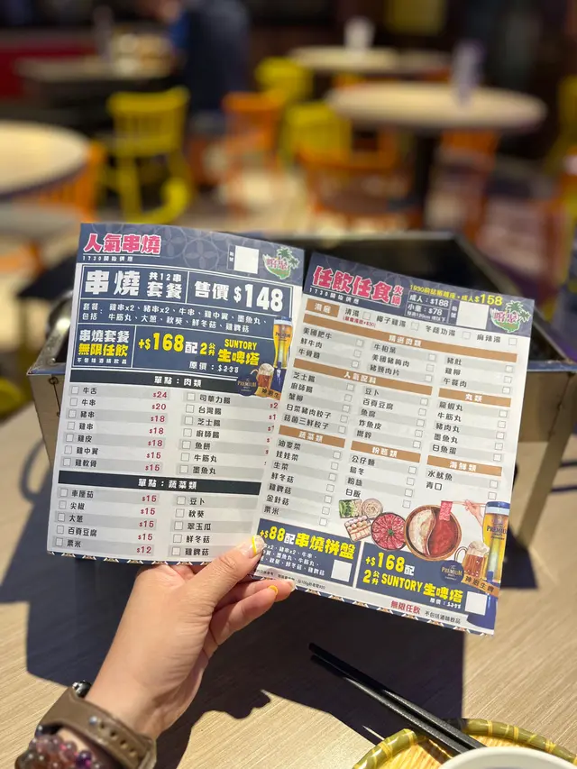 #跟住我食唔中伏 #串燒推薦 早幾日去咗 #圍方thewai 朝聖😎傍晚就上網search到沙角邨有抵食串燒🤩一出港鐵站就望到對面勁多燈牌❤️好少可冬菇亭咁靚本身係俾個$148串燒套餐吸引來但去到門口又見到任食火鍋都好正🤣同埋心心又食唔到咁多串燒…最後決定火鍋另再加串燒拼盤😋 #我本人真係很happy老公係飲得之人,仲order咗2公升Suntory生啤塔🎉 #我即打卡🤣個串燒拼盤真心靚🥹❤️睇到真係食慾大增串燒+生啤真心係人生享受🤤燒得好靚,唔會太乾又夠巨大串👍估唔到墨魚丸同牛丸都勁好食! #推薦必食串燒 任食火鍋嘅美國肥牛好好食‼️心心不停追加🤣其他配料都唔錯,鮮牛肉夠滑,水魷魚新鮮彈牙👍蔬菜又新鮮唔老,出菜速度都好快無漏單✅仲有限定追加配料,勁多芝士丸類😍岩哂心心,佢勁中意!任飲飲品都有好多選擇,而且晚市任食火鍋仲送特飲❤️ #又靚又好飲我地揀咗華田雪山 & 草莓乳酸七喜 #靚 #好味 #大杯 餐廳內外設計都幾靚🥹真心唔似冬菇亭🤣燈牌超靚岩哂打卡😍好似我哋咁,襯太陽未落哂山去影就最靚✌🏻價錢仲有勁多優惠:火鍋任食早鳥價$158💥長者優惠$118,小童價$78…查看更多
