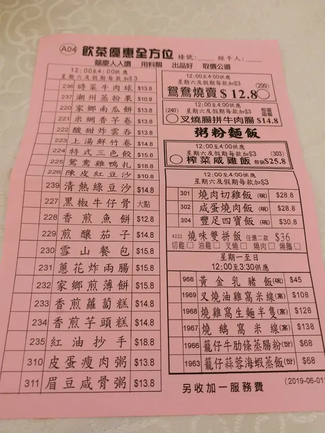 由於同朋友嘅紫微斗數同八字話題未完,朋友約我第二日飲茶再吹,地點係囍慶.由於食過土瓜灣壹點甜之后,已經好少上酒樓飲茶,因為好多大集團酒樓點心質素質素都好差.囍慶算係例外,相比起其他大集團果D大酒樓,囍慶嘅蝦餃份量正常,蝦肉尚算彈牙,蝦餃皮薄得黎無穿窿,叉燒腸嘅叉燒餡料無偷工減料,薄罉配料足,幾款點心已經好過好多酒樓.上到囍慶遇上紅雨,磨咗成三個鐘,侍應都無趕我地走,冷氣又足夠,合格咯!繼續同朋友玄學問題吹水先!…查看更多
