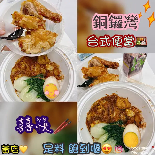 #黃店🇭🇰CWB- 囍筷又嚟試銅鑼灣小店既時候啦❗️今次嚟到囍筷,入面可堂食的位置到較細 得Bar枱位置~~所以我都係外賣咗 食晏時間都多人外賣拎走?咁鋪頭主打台灣菜🍱,仲係便當型式,令人食得好開心,價錢係銅鑼灣嚟講算好親民🧏🏻‍♀️👅炸雞腿便當(⭐8/10) $57呢個套餐包左紙包飲品☺️呢個飯食完真係好飽好飽 抵食~~佢既配菜有粉絲,兩條菜,半隻滷蛋…鐘意粉絲既我覺得好正 粉絲都好入味😆炸雞腿同飯分隔左👍🏻唔會令到炸雞腿淋哂~~食落脆卜卜 有小小肉汁 唔會好乾,又大大份 ~~大家要繼續支持黃店🥲💛🚩地址: 囍筷 (銅鑼灣)銅鑼灣禮頓道128-138號希雲大廈地下2號舖查看更多