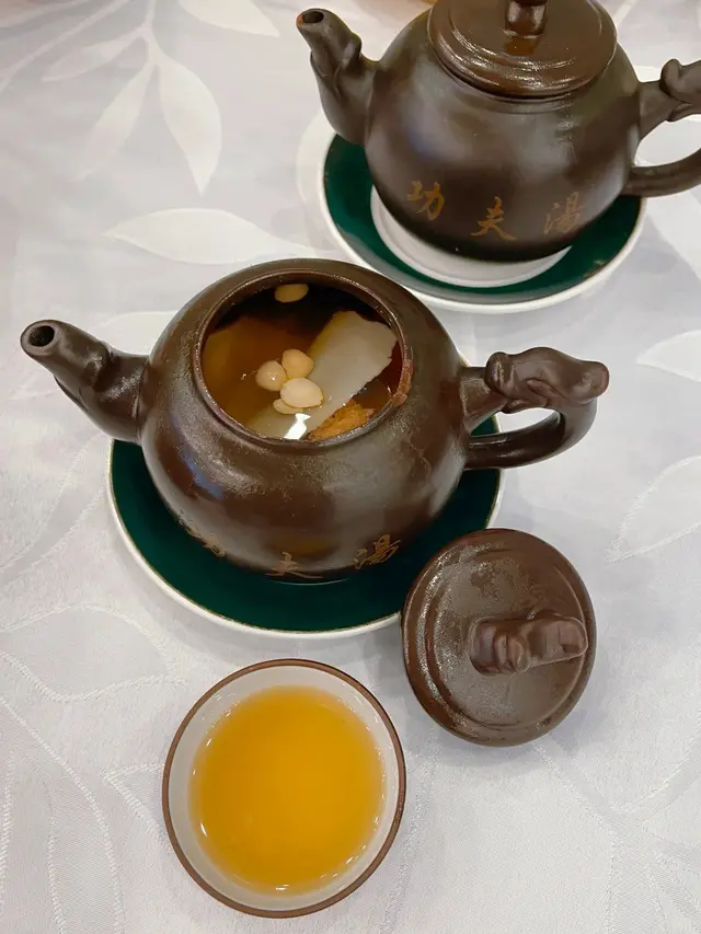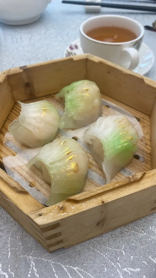 一入門就畀水晶燈閃到眼💫裝潢靚到唔使多講!見到四圍都係講粵語嘅公公婆婆👵🏻👴🏻,就知冇踩雷~熱辣辣炸到金黃嘅酥皮一咬爆漿軟綿綿蘿蔔泥鹹香夠味,底層奧利奧碎真係畫龍點睛🤤上菜時煙霧繚繞超有氣勢!脆卜卜外層裹住大大隻蝦肉,夾雜芝士香蘸埋特調醬簡直絕配~燉湯清澈但濃郁好足料飲落鮮甜滋補,飲完仲可以撈埋裡面嘅食材食夠晒滿足👑一籠有 7 款點心💛下層傳統點心經典,中層黑芝麻流心軟糯,上層雪梨粿清新🦚查看更多