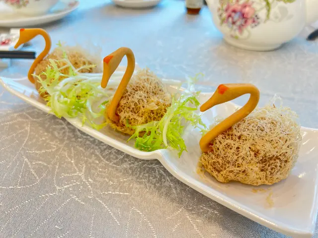 因為我們一家比較西化的原因,很少去中式酒樓吃點心,但係在網上看見一間酒家有一些很可愛的特色點心,今日來到啟德去光顧人客。我們特意叫了幾款比較精緻的點心,分別是🌟上湯金魚餃金魚餃其實是蝦餃般,裏面的餡料都算彈牙,外皮製作成金魚的造型,非常精緻。🌟流金豬仔包這個豬仔包的餡料是流心奶黃,小朋友一定大愛,真的有流沙的效果。🌟流金增城掛綠最初以為也荔枝造型的炸蝦丸,原來是入邊是奶皇餡亦是流心效果的,有點驚喜。🌟鮑魚千層酥$32/隻鮑魚不算大粒,但酥皮夠脆,價格有一點昂貴,不過十分精緻。🌟脆皮流汁BB乳鴿乳鴿都幾值得推介,因為外皮香脆,內裏的肉汁也保存到,亦夠入味。🌟麻香海蜇平時比較少食的海蜇,非常彈壓爽口不會太辣份量亦足夠。🌟秘方炮製茶壺湯(碗)充滿雞的濃香味道,喜歡飲湯的朋友也可值得一試。🌟燒味雙拼飯叉燒+燒腩仔反而燒味令人有點失望,叉燒不是半肥瘦有點硬,相反燒腩仔則太多肥膏,有很多部份也不能進食。整體來說這間酒樓的環境尚可,因為有窗口位也舒適,點心相對主食出色。查看更多