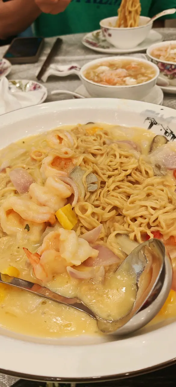 上次試過12人套餐,覺得好食。所以今日帶埋家人嚟食晚飯。但係有啲失望。首先叫咗個六人套餐。叉燒係好味嘅👍芝士龍蝦伊麵 😢覺得佢一pat pat,龍蝦唔係好多金瑤花膠燕窩👌比較夠味火龍果蜜椒牛柳粒👍炒得嘢味,牛柳粒夠淋沙律棧避風塘鮑魚😢 呢個有啲失望,鮑魚完全冇鮮甜嘅味道,食起來好似咬橡筋咁樣蝦湯魚肚浸勝瓜👌 呢個過關 五個人唔係好夠食,另外叫咗個金銀蛋肉鬆浸時菜👌 都係好一般,份量又好細 瑤柱蛋白炒飯👌呢個過關, 沒有驚喜 呢一餐平均消費三百蚊,唔算有驚喜。勝在環境夠新夠舒服。查看更多