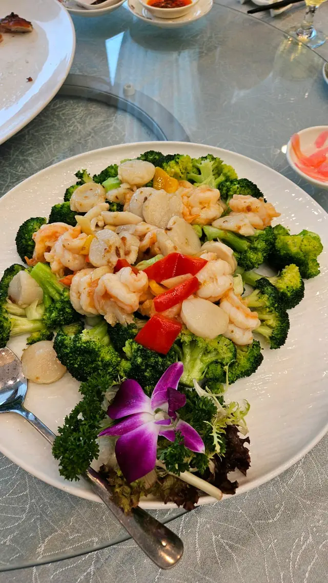 應朋友邀請出席百日宴午宴,喺啟德呢個新開商場一間酒樓,酒樓環境唔錯應該唔平,午宴開始。乳豬全體皮脆肉嫩,皮脆得嚟鬆化,美中不足有少少騷味。西蘭花蝦球帶子,好夠味有鮮味,蝦球大隻爽彈。北菇元貝節瓜甫,瑤柱味道相當濃郁。百花炸蟹鉗,外皮加粒粒脆米增加口感,唯蝦膠味道偏淡。海皇蟹肉翅,高湯好濃,蝦蟹都鮮,相當唔錯。鮑魚扣鵝掌,鮑魚口感有啲韌又無乜味,鵝掌超級巨型好食。蒸老虎斑新鮮脆皮燒雞雞皮超級脆,有雞味肉嫩。紅豆沙唔太甜煲得好靚。所有菜式份量都相對大,酒席味道係我食過嘅算高分。查看更多