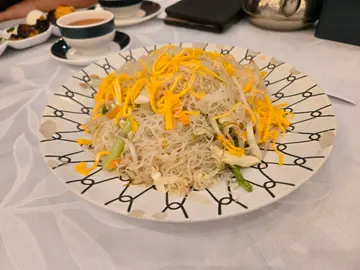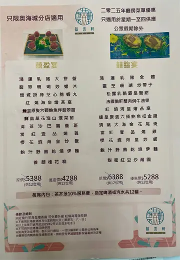 經濟低迷下市民無心消費,結業潮首當其衝便是依賴酒席設宴的中式酒樓,僅餘的亦紛紛用震撼優惠救亡。餐廳近日推出了特價套餐,只需$368便有清蒸沙巴、脆皮雞和自選兩款小菜,還奉送糖水足夠四人分享。——————————————————✨椒鹽鮑魚✨$108額外加點了晚市特惠菜式,鮑魚比想像中厚身,有口感同時不會硬實。炸漿輕薄,佐以雜果沙律不會膩口,可惜用作承載的炸蜂巢不夠乾脆,似乎不是即製但整體而言物有所值。【$368特價套餐】✨清蒸沙巴仔✨時間掌控精準,魚肉剛剛離骨,肉質結實鮮甜✨脆皮燒雞✨略嫌外皮較油潤算不上極脆,但雞肉嫩滑甘香✨粟米海皇羹✨正常發揮,不要期望有大蝦帶子但每一口都有蝦仁或魷魚✨沙爹金菇肥牛煲✨邪惡熱辣辣煲仔,銀芽和韮黃爽脆水嫩的口感中和了吸滿沙爹汁粉絲的辛辣。唯獨勾芡沒有考慮到用煲仔上菜餘熱會盡一步收乾醬汁,結果過於濃稠最後奉送一碗陳皮紅豆沙作結,人均不過一百多已非常滿足,基本功架穩扎,沒有因進取的優惠而棄用新鮮的食材,是合格有餘的粵菜,難怪仍能在更替的浪潮中生存。…查看更多