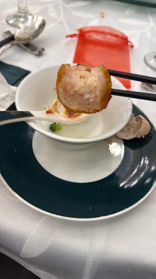 因為親戚小朋友慶祝百日宴揀咗呢間餐廳,所以就專誠過嚟食餐飯😌-通常第一道菜都係乳豬,佢地既乳豬可以話係成餐飯最好食🤣乳豬皮脆,但肉比較薄身,每舊大細都係一口size,唔會有啲特別大特別細第二道菜係大蝦帶子炒西蘭花。呢碟野好鹹🤣但大蝦同帶子都係正常嘢,西蘭花就有少少草青味第三個係炸蟹鉗,比較硬身,要咬好耐,牙唔好盡量唔好食呢個,同埋佢似係蝦膠溝少少蟹同蝦打成球拎去炸?因為佢冇咩蟹味,但係又好似冇咩蝦味🤣第四碟係鮑魚炆鵝掌,鵝掌無食,但就咁食鮑魚都覺得好鹹然後就有必備蒸石斑,石斑都係好嚡身🤡不過啲配菜就幾好食🤣即係豉油同蔥嗰啲炸子雞比較油,同埋都係比較嚡身甜品係紅豆沙,呢個唔係好甜,即係佢應該冇落糖,但同時都未起哂沙🤣-去到後面愈坐愈熱,要同人講先話幫我地搞一搞,發生咩事大家都知啦🫢🫢…查看更多