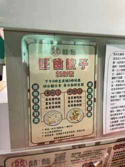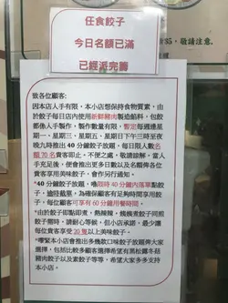 係網上見到呢間舖做任食餃子,餃子控嘅我,特登去試下。點知去左兩次,都排長龍,轉去吃壽司郎又截咗walk in,去咗5-6次都冇位吃壽司郎。真黑仔😅今次5點收工同同事即刻去,間舖已經排長龍,睇來香港都好多餃子🥟控。大約排咗30分鐘左右,先有位。見到有兩張台兩個阿姐係度不停包餃子,(開始我以為係工場來貨急凍餃子)。58蚊一個人,連埋杯嘢飲,有3款餃子,款式唔多。煎餃就等大約等15分鐘,湯餃就大約等8分鐘左右,都坐滿晒人,但店員就唔多,有漏單,不過講聲就即刻補返。前後同同事大約吃左50隻餃子左右。確實數冇數🤣不過見隔離台幾個大隻佬超誇張,吃咗起碼過百隻😂睇來好鍾意吃餃子🥟另外同事想試麻辣燙,類似車仔麵咁,7個餸45蚊加個紅薯粉就多5蚊,份量都好大碗。間舖就好細間,坐位大約20個度,價錢對得起個食物質素。抵吃,呢個價錢,嘢食唔差任食餃子貼住張小通告,原來得星期一三五日有提供,每人有60分鐘堂食,個人建議,叫煎餃先再叫湯餃,因為煎餃耐啲同真係好L熱😅但好吃嘅,臨埋單問個收銀任吃餃子做到幾時,個收銀自己都唔知,話推廣價,遲下會加價,趁未加價,有機會再去吃過查看更多