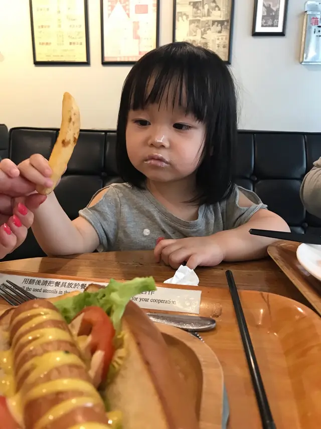石硤尾區來講,想搵間好坐啲傾吓計嘅Cafe就真係唔容易啦,諗嚟諗去呢度已經係最好㗎啦!呢度好適合三五知己傾吓計,或者帶小朋友嚟都唔錯,地方夠大,而且環境亦都好靚,影得唔錯!食物都OK價錢唔貴。巨型熱狗有驚喜!!!份量好多,而且個薯條仲好好食添!咁嘅價錢真係超值!另外仲有個皇室三層假,有炸雞翼有沙律,味道唔錯,而且個炸雞翼仲好脆好入味!不過甜品就真係麻麻啦!我記得以前有cheese cake架!而家就變咗個瑞士卷,仲要係硬挖挖唔新鮮!但係咁嘅價錢咁嘅環境,算唔錯啦!不過杯咖啡真係好難飲!