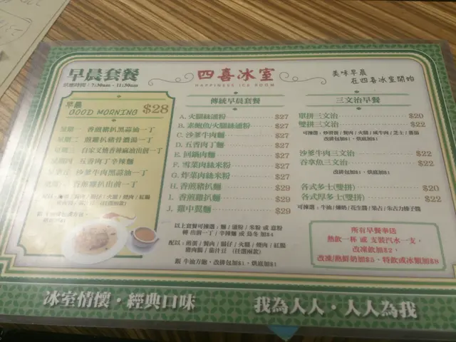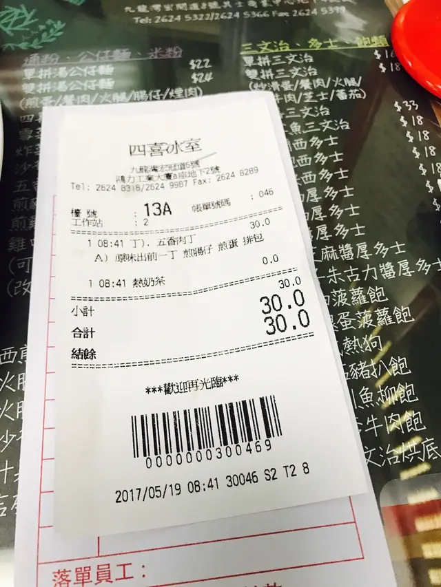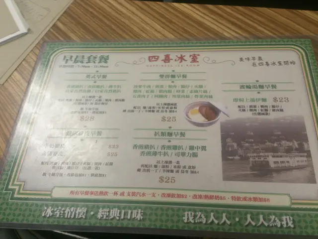 不經不覺,在自己發掘下,九龍灣的小店,都吃了差不多20多家。或許年資比我多的同事,都沒吃過20家!皆因他們經常說「來來去去」都是那幾家。可不是呢。不過要講特色,「四喜冰室」算是工廈食肆當中較有懷舊特式的:一進店,看着餐牌,收銀的女職員(好像是分配工作的老闆娘)告訴我「唔緊要,慢慢看!」好親切啊!餐牌設計盡顯心思,也看到店主有意打造「懷舊冰室」。不過,「我為人人,人人為我」放諸於這餐牌,又有何特別含意?點過「星期五」早餐,在等候途中,發現入座率都有80%!只好站在門口等候,順道觀察一下環境:當然設有冰室少不了的卡位。然而,環境相對較擁擠,但仍感受到那份「舊港式冰室」的風格。比較有特色的,是簡單如一個櫃子也要用上木材,櫃頂還放上一些玻璃樽,作簡單擺設。而在門口還有其他小擺設和宣傳。等了大約7分鐘,外賣到手了。離開時,才發現連門口的階磚也是由黑白小階磚鋪成,盡顯心思和風格。回到辦公室了。這一次又飲熱奶茶了,品嚐一下四喜冰室沖的有沒有港式風味?幸好,也是用上「黑白淡奶」沖製的,味道香濃,就是這種港式味道了。早餐附有腸仔、煎蛋及排包(+$1)。沒想過會用上這種特別腸仔,而且只有1條、蛋也只有1隻…腸仔不油膩,牛仔腸吧,在早腸吃到,還感覺挺有特色的。可惜只有1條。蛋沒有驚喜,太陽蛋包着蛋黃,沒有「燶底」。排包,牛油味始終不夠突出,雖然烘過但麵包仍然是軟熟的……「星期五」早餐是沙嗲牛肉黑蒜油味出前一丁。牛肉味不見突出,而沙嗲則應該沒有了,因為都被味精湯底吸掉。出前一丁麵,雖然在走到辦公室的路程中浸軟了,不過未致於太軟身,應該是煮公仔麵的時間煮得剛好。味精包都給我全放下於湯裏,但湯面的「黑蒜味」不多,反而越食越底的麵,就更有黑蒜味!至少那包黑蒜油,應該額外送上,由客人自己下吧……雖然是工商業區小店,但就連糖包也設計過—沒有用上坊間的包裝糖,反而自家生產糖包,見到店主頗用心經營冰室的形象呢!在九龍灣工商業區逛着,有時真的會錯過如四喜冰室的小店—沒有招牌,門口非常窄,毫不起眼。雖然食物味道未算非常好,但可見四喜冰室在環境及食物款式,甚至很細微的地方也佷講究。希望這種充滿港式懷舊情懷的隱世冰室,可以被我越找越多!查看更多