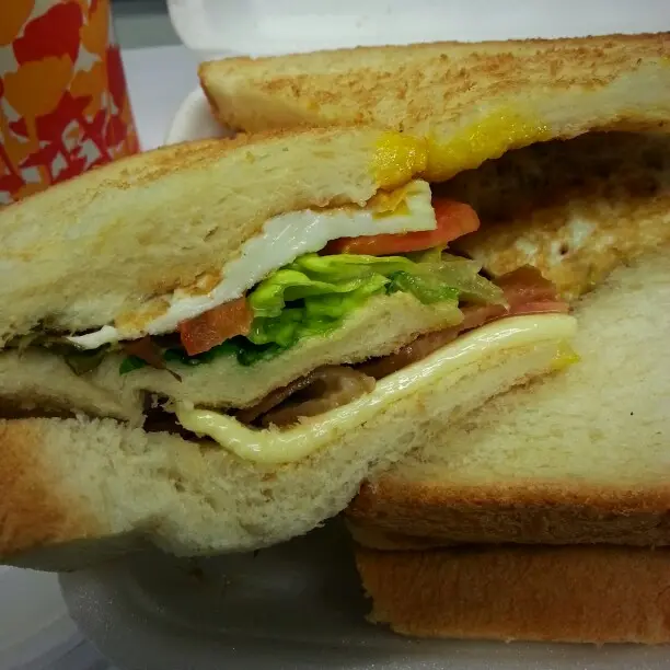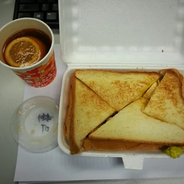 又係公司叫tea嘅日子,幾乎我地次次都叫四喜,貪佢有得fax落單紙去,一次叫成廿個tea,電話落單實亂。其次佢啲野幾好食,外賣黎到都仲熱。今日叫左公司三文治加熱檸茶,三十幾蚊。足料又有烘底,有煎蛋(仲有蛋汁流出),生菜,蕃茄,芝士,煙肉,午餐肉等,塗左牛油同千島醬,厚厚一件味道豐富,一口咬落去蛋汁滿溢,好耐無食過咁正嘅公司治,食完四件飽到爆。今日戰績~ 查看更多
