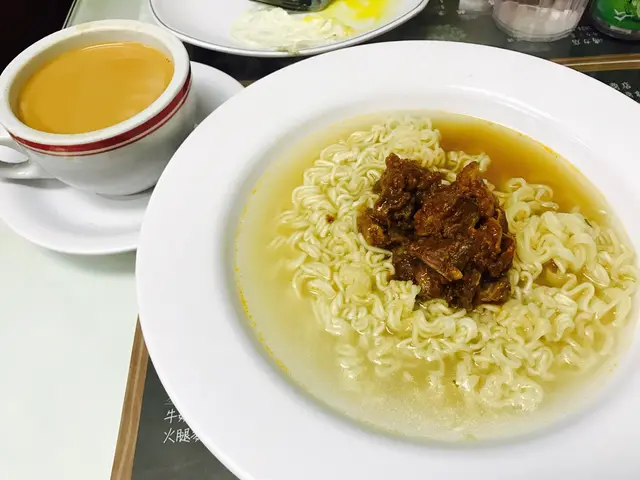 做運動前先醫肚,在openrice搜尋下附近有咩五十蚊樓下嘅好選擇,見內裡環境不錯就來試試。位於九龍灣工廠區的地舖位置星期六中午,食客不多,裝修走懷舊經歷路線入內有位年輕女侍應好殷勤咁招呼,服務態度很好冰室一角的“飛沙茶奶”牌匾牆身有一大幅色彩繽紛嘅印刷品飲咖啡係咪真係可以迴魂㗎????在檯面的詳細餐牌時間不早無早餐食,唯有揀常餐我點嘅常餐 係 薑絲鮮牛麵轉通粉配健康蕃茄濃湯 配北海道3.6牛奶炒滑蛋及火腿配厚切牛油方飽烘底 +$1 餐送熱飲加錢轉紅豆冰(多豆少冰)+$8紅豆冰都幾細杯囉,仲要加錢…有少到冰但紅豆份量係頗少嘅,奶水偏稀,唯一好的…紅豆夠淋蕃茄濃湯紅卜卜的確好濃郁嘅罐頭蕃醬,好似飲緊茄汁咁,但健康嗎? 哈哈份量很足,牛肉好多, 但睇落無薑絲蹤影,尋遍不果,一絲也看不見…主角鮮牛肉呢… 未食齋睇都知用咗梳打粉乸過,在外用餐食鮮牛都預咗係食梳打牛,但食落口… 根本唔知自己食緊牛肉,梳打粉乸得好勁,無晒肉質,滑到無輪,極難食炒滑蛋炒唔老但又未去到滑嘅階…厚多士真係有厚到嗎 ?西煎豬扒麵 配金寶忌廉雞湯麵軟硬度剛好,豬扒不過不失,湯底OK奶茶滑而香濃華星冰室和澳牛位處旺區地段,品質有水準加上價錢都無咁貴;如果整得好食賣相好環境有特色服務好比依個價錢都算,但真係比果碟無薑絲梳打鮮牛通KO咗…食品質素同一般茶餐廳沒有太大分別,甚至差d…真係唔得囉查看更多