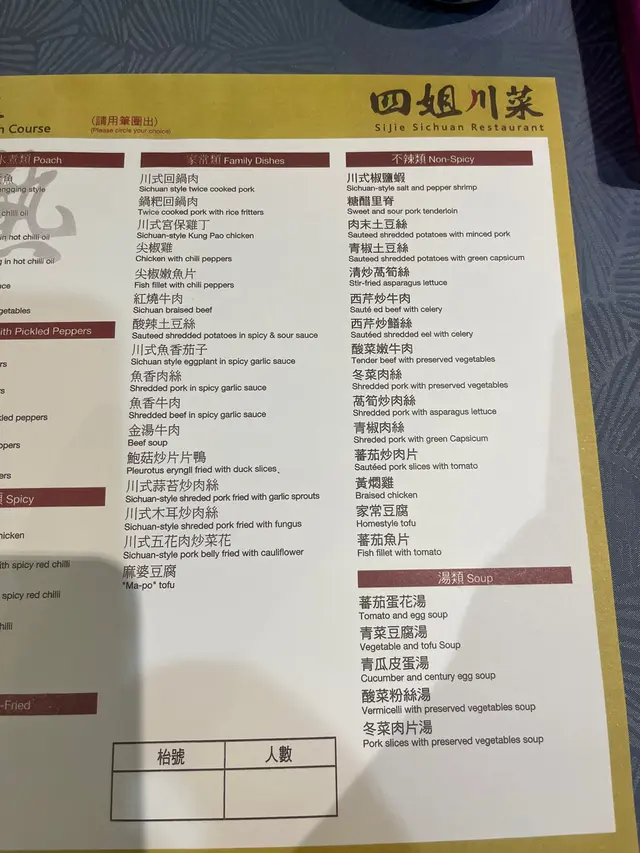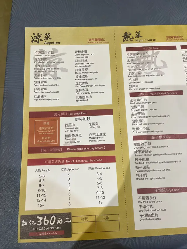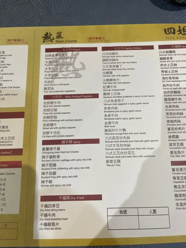 好耐都冇食四姐,今晚特如其來嘅機會。能夠保持到一貫高水準,難得!👍🏻呢度按人頭收費,再按人數計算菜式嘅數量。是晚2人食用:2個前菜,3個主菜,再送一碟青菜。份量超過2人所需😆我哋叫咗:🐠🌶️招牌水煮魚🌶️🐠魚塊好厚身,又大塊,好新鮮,好滑,好味😋🐔辣子雞🐔雞粒炸到好香口,辣味唔係太重,好啱送啤酒🍻爽👍🏻🐷魚香肉絲🐷甜甜酸酸好開胃😋🫑油扁椒🫑呢個有驚喜!!!外皮脆,內里沾滿蒜蓉,配埋黑醋汁,好開胃🤤LadyB食唔停!涼拌涼瓜涼瓜唔苦,好襯蒜蓉汁,好正!一句講晒:招牌老店保持到水準,難得👍🏻…查看更多