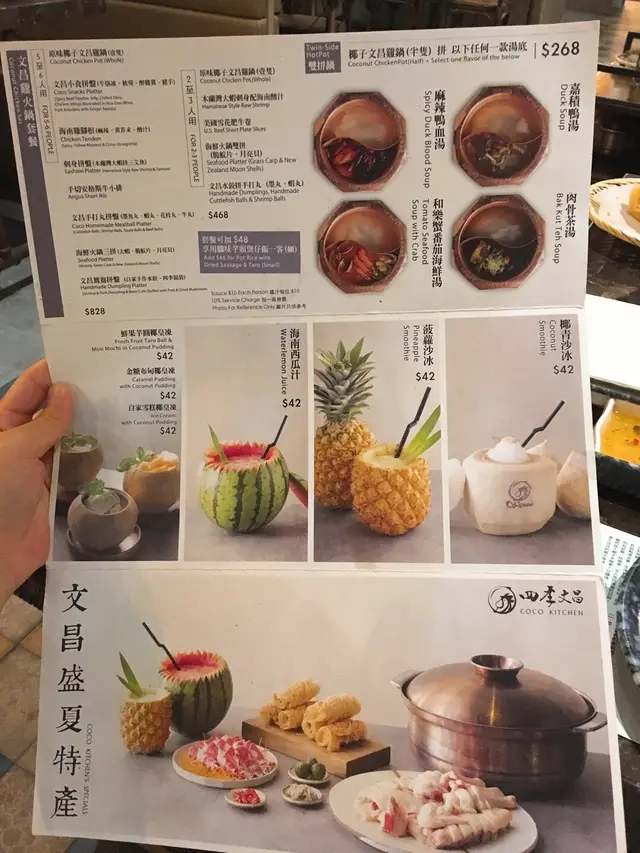 忙左咁耐,最近終於有時間整理下啲食評😌前排有陣子好興食椰子雞鍋,冇時間上大陸食,於是有日就同屋企人近近地試咗尖沙咀嘅四季文昌~試左椰子雞鍋,湯底係用新鮮既椰子水,店員係我地面前即場倒入鍋入面,再加入雞塊,蓋上蓋,有個計時漏斗計住。由於湯底並唔係一般既清水,而係新鮮椰子水,所以成個鍋係有超香既椰子味,而且超清甜,我忍唔住未食野就飲左兩碗😋😋😋安格斯牛小排,肥牛色澤好好,雪花好靚😍😍😍唔洗我講淨係睇圖都知好食,嫩口又香牛味👍🏻👍🏻👍🏻雖然偏貴,但對得起傾錢。玫瑰黑豚腩片,我唔係識好識食豬肉,對我隻隻豬肉食落既味都一樣😂不過依個值得讚下既係佢擺盤好靚,平平無奇嘅豬肉片可以摺成玫瑰花嘅樣,幾有心思。食物方面雖然價錢偏高,但質素幾好,整體都幾好食👍🏻飲品方面,屋企人個個都叫咗個椰青,而我就試吓啲特別啲嘅嘢,試左個四季魔法梳打,不過唔係好岩我口味😅下次都係飲返椰青最穩陣😂…查看更多