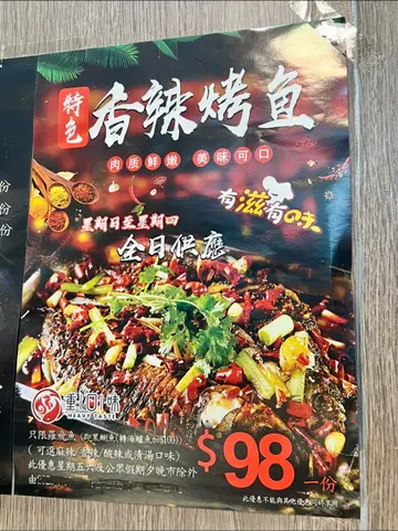 鍾意食辣嘅一定唔好錯過,深水埗四川重口味🔹香辣烤魚🐟(酸辣口味)🔹炸過嘅魚肉比較香口蕉脆,肉質都好鮮嫩加上花椒乾辣椒及其他香料烹調,真係好惹味配料份量好足,湯頭酸酸辣辣好開胃,下次可以試吓佢哋嘅麻辣口味😋🔸小酥肉🔸炸到好香脆,而且非常入味,配埋孜然粉加辣粉,真係好match👍🏻🔹京葱爆炒牛肉🔹牛肉肉質好嫩滑、京蔥一齊爆炒,非常入味,配飯一流🔸蒜泥白肉🔸肉片每一塊都切到好均勻,非常薄,加埋蒜泥,每一啖都可以刺激到味蕾,必點🔹紅糖糍粑🔹呢個係我每次必點之一,軟軟糯糯嘅糍粑加埋紅糖真係好好吃,建議一定要趁熱食😍🔸桃膠冰粉🔸食完酸酸辣辣刺激味蕾嘅食物,最後食埋冰粉就最perfect❤️❤️…查看更多