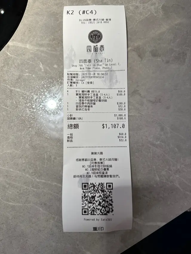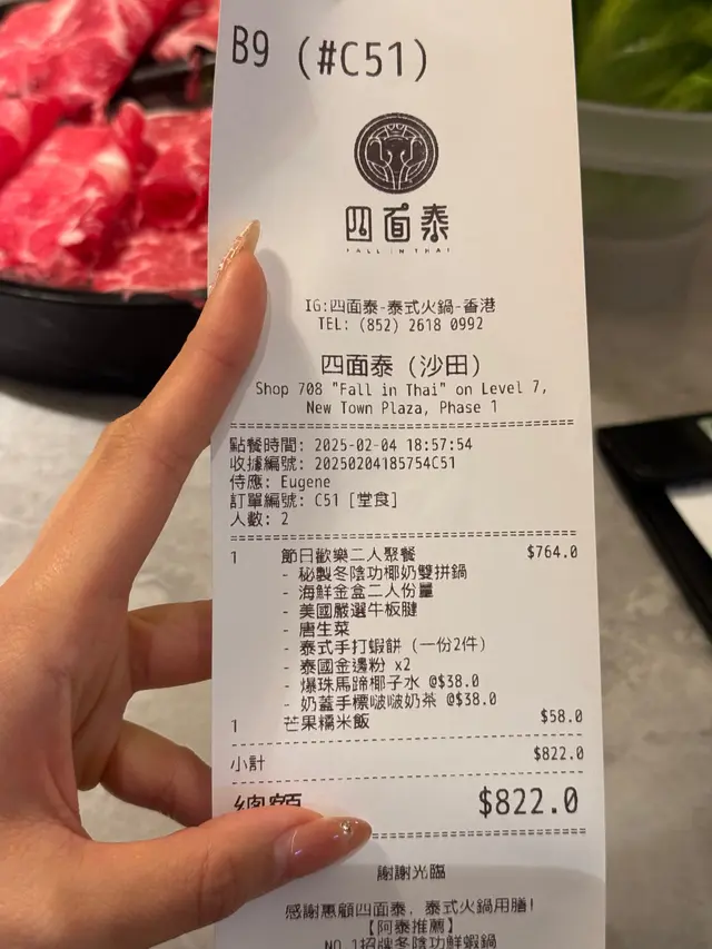 四面泰泰式火鍋 (沙田) 網址: https://s.openrice.com/QrbS03LmC00 地址: 香港沙田沙田正街18-19號新城市廣場一期7樓708號舖 電話: +852 26180992