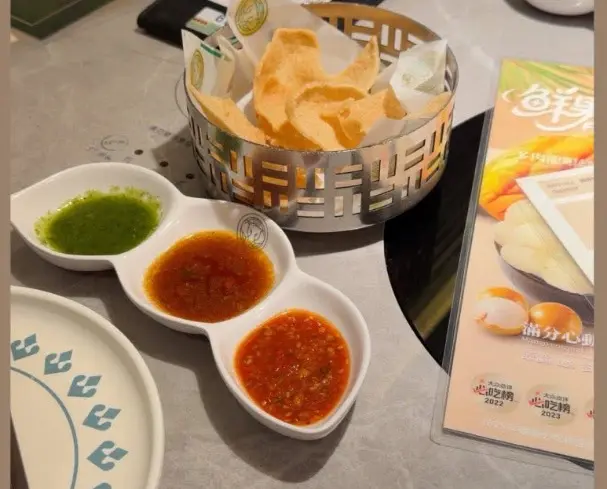 蝦餅都係必食,夠彈牙結實,雖然$24一件但都值得一試。冬陰功湯唔會太酸有微辣,不錯。肉放了落椰奶雞湯,肉就有香香嘅雞湯味,都不錯。牛板腱和黑毛豬賣相都不錯,食落唔會嚡和靭。而這盆蔬菜份量都不少,對於我黎講食100g加這盆菜已經非常足夠。最後我們還點了一份點品「多肉青提蜂蜜椰冰」,我覺得這個點品嘅重點是椰汁冰,食落冰很幼細,沒有食冰嘅感覺,入口即溶,冰底還是椰果,爆珠,另外這杯蜜糖🍯都非常美味,但我哋唔想影響椰汁嘅味道就只加了一點,可惜浪費了這杯蜜糖。我們還在大眾點評給了一點意見,之後還每人送了一杯特飲。