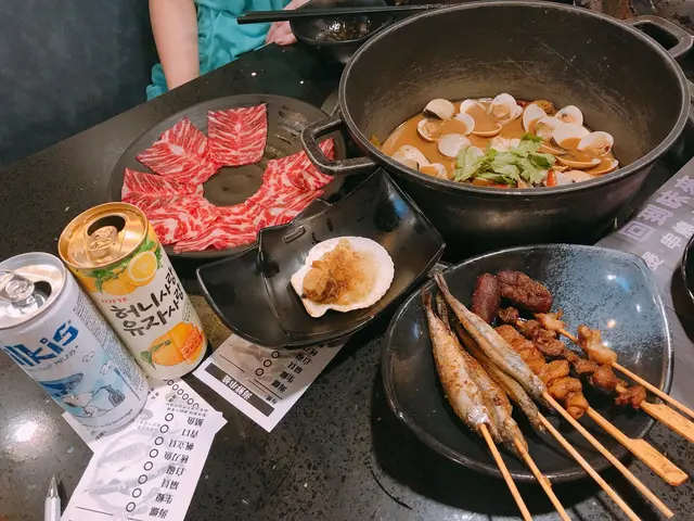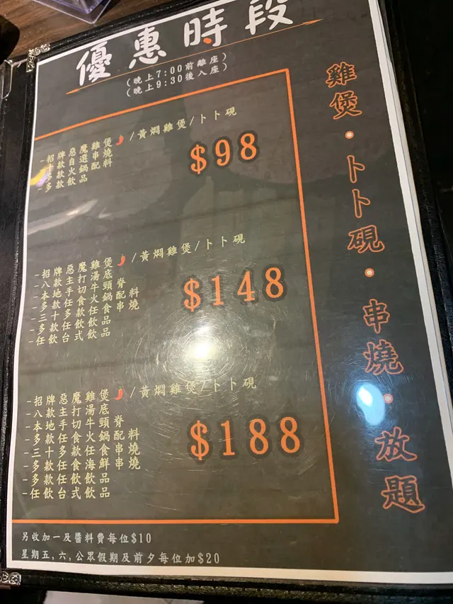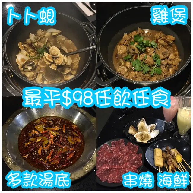 朋友知我係食肉獸,旺角咁多食店,又想試下新野,朋友帶我黎,今次想食雞煲,下次先試卜卜蜆,招牌悪魔雞煲好惹味,可惜朋友唔食辣,試黃燜雞煲黃燜雞煲鹹鹹地都幾好食,雞份量夠多,好好肉,食肉獸表示咁先過癮,食完可以自助加湯打邊爐打邊爐當少得牛,我揀左本地手切牛頸脊,肉味鮮,鮮嫩有牛脂香,肉質彈牙仲有串燒即食架,孜然粉調味夠風味,燒到外脆內脆,送下酒仲正自助攞丸類,蔬菜打邊爐珍珠奶茶奶味較重,珍珠彈牙抹茶珍珠奶茶有茶香,冬瓜爆谷茶清涼解渴,同台式飲品一樣味,鍾意就飲多幾杯啦