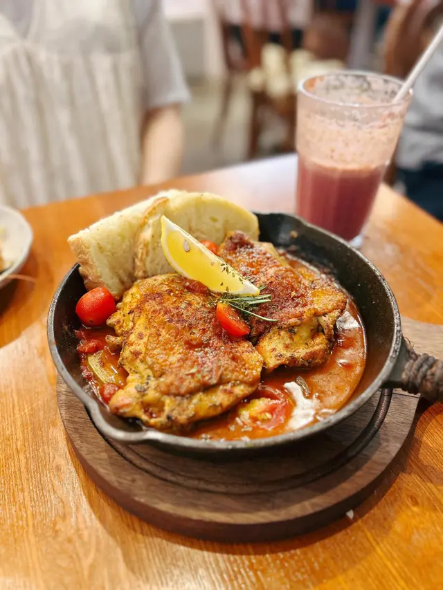 回春是以健康飲食為主題的餐廳,木調裝潢讓人特別放鬆。我和朋友選了秘製冬蔭青口海鮮蝴蝶粉,以冬蔭功醬汁為基底,味道小辣卻不刺喉,醬汁濃郁,完美掛在蝴蝶粉上,口感惹味。海鮮包括新鮮青口、鮮蝦、魷魚、八爪魚和蜆肉,搭配洋蔥和蒜,帶來豐富口感。碗內還有迷你青檸,可隨意擠壓調節酸度。另外,點了西西里美麗傳說沙律,沙律是健康飲食的典範,用料很多包括慢煮雞胸、西柚、香橙、酪梨、茴香、薄荷、羅望籽及紅酒醋漬紫洋蔥。慢煮雞胸肉質嫩滑,完全不柴,帶有淡淡香草味。紅酒醋醃製的紫洋蔥清新不辣,與水果的酸甜完美平衡,適合追求晚餐輕食的我。飲品方面牛牛果青瓜啤梨羽衣甘藍燕麥奶昔,這款奶昔以牛油果「牛牛果」為主,味道厚實順滑,帶來濃郁的果香。啤梨的清新口感與青瓜的醒神味相輔相成。生可可藍莓低卡蕉蕉燕麥奶昔以生可可為特色,香濃而不像朱古力那樣甜膩,帶有微苦感,令人感到清新。藍莓和香蕉(蕉蕉)的甜味與可可平衡,整體口感順滑。最後當然不少得自家製伯爵茶巴斯克芝士蛋糕,用料十足,伯爵茶味帶出淡淡茶香,與濃郁的芝士完美融合。少量玫瑰花提升視覺及儀式感,增添了花香層次,蛋糕外表略為焦化,增添口感豐富度,實在值得一試。…查看更多