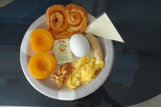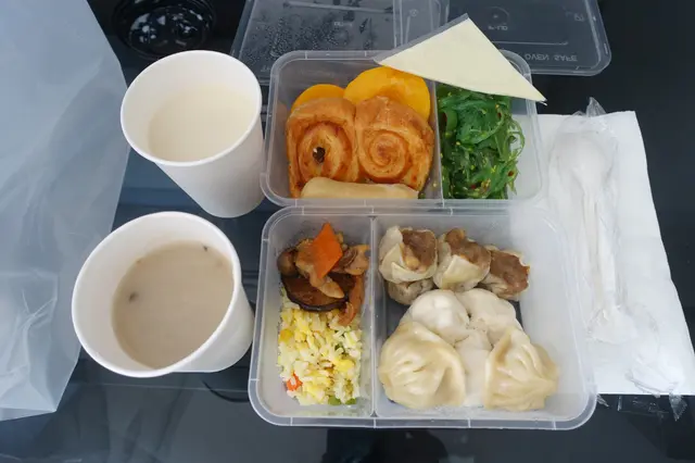 這是我們首次體驗酒店外賣自助早餐:(我們第二天早上走到帝盛酒店1樓 <圃公館>!當時,限聚令下每枱只限2人!食物以中式及西式,款式不多!提供每人兩個食物盒,兩個紙杯及餐具,攞早餐返酒店房食!當我得知酒店安排,我自備紙碟以便影相,賣相更好!