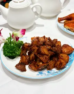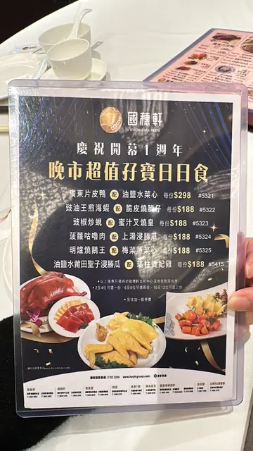 餐廳是經典的中式酒樓格局,寬敞明亮,桌距適中,沒有壓迫感,坐得舒服自在。週年慶推出的「晚飯孖寶」優惠,選擇豐富,定價確實超級經濟實惠,在高級粵菜廳中屬難得一見。🌟孖寶一:油鹽水莆田聖子浸勝瓜 + 瑤柱貴妃雞🥢油鹽水莆田聖子浸勝瓜莆田聖子個頭不小,肉質新鮮爽嫩,處理得乾淨無沙,湯汁清澈,鹹鮮味恰到好處。勝瓜吸飽了湯汁和聖子的鮮味,清甜可口。🥢瑤柱貴妃雞雞肉皮滑肉嫩,雞胸肉不鞋,雞脾位更加係嫩滑有肉汁。🌟孖寶二:清蒸沙巴斑仔 + 蜜汁叉燒 🥢清蒸沙巴斑仔斑仔約一斤重,大小適中。火候精準,魚肉剛熟,口感嫩滑細緻。蔥絲、薑絲鋪面增加鮮味。 🥢蜜汁叉燒叉燒賣相紅潤亮澤,肉質入口鬆化,油脂甘香,不會過甜。🌟餐廳額外贈送了紅豆沙與綠豆沙。紅豆沙起沙,口感綿滑;綠豆沙同樣軟糯,甜度溫和適中,為整頓晚餐畫上完美句號。🌟餐廳整體體驗令人滿意,環境舒適乾淨,服務在滿座情況下仍有效率。週年「孖寶」優惠極具吸引力,絕對會再黎。…查看更多