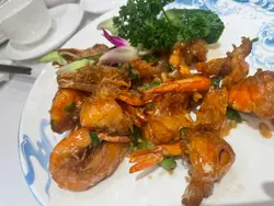 Mantis Shrimp in crispy garlic and chilli sampan style