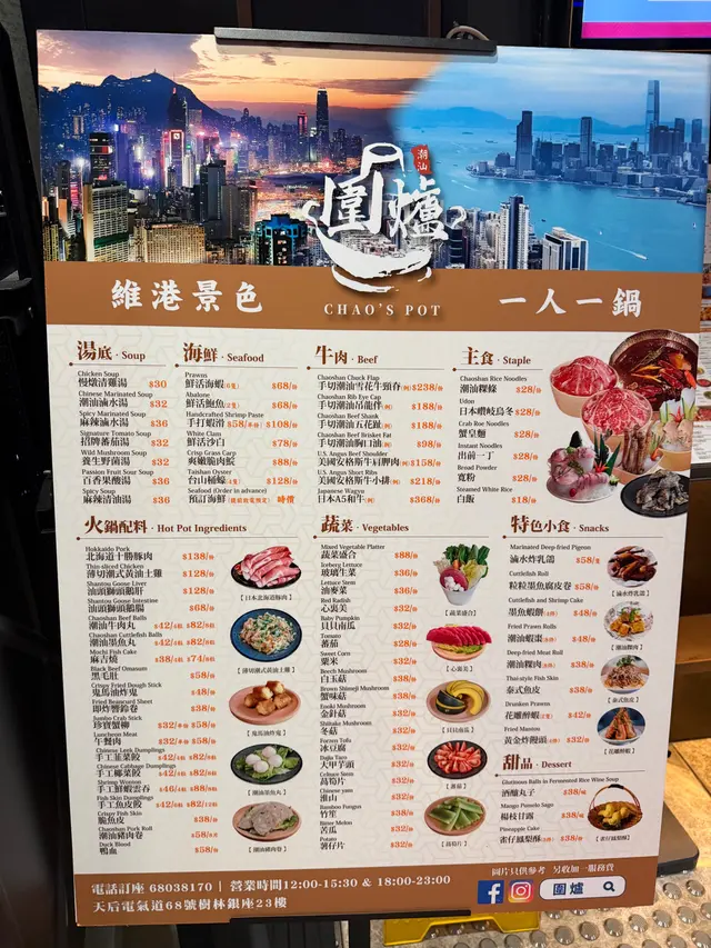 圍爐,位於天后既火鍋店,一覽維港景色既餐廳🤩相當難得,餐廳主打一人一鍋,潮式風味既邊爐,先飲杯麒麟生啤先🍻Cheers,$58超抵價👍🏻配個潮州小食,潮汕蝦棗,脆得黎蝦肉好味,正👻麻辣滷水湯,非常有特色,香濃好味😋因為加左鵝油真係有滷水香,細心🫶🏻食極都仲好濃,配牛肉一流,手切潮汕吊龍伴,潮汕牛肉必食部分,真手切口感一流,牛味好濃好正😻招牌蕃茄湯,唔太酸,都幾啱打邊爐,手工鮮蝦雲吞,掛左茄湯個皮仲正左😽餡蝦味好濃好好味,手工韮菜餃,皮薄而爆餡,超好味🤤真必食👍🏻午餐肉,有火腿個隻,正😄冰豆腐,不論吸晒啲茄湯定滷水麻辣湯都好好味,重口味必選麻辣👍🏻萵筍片爽身,唔錯,美國安格斯牛小排,油脂分布幾靚,份量都多,口感好味😋有麻辣有滷水,鴨血走唔甩,滑身吸味😸飲枝蜂嗚,蜂蜜啤,濃好多既手工啤,推薦🫶🏻相當高質而有心思既火鍋店💕食材真有料,不論係牛肉既質素定係手工餃既風味都係不容錯過😌性價比高,值得支持💪🏻…查看更多