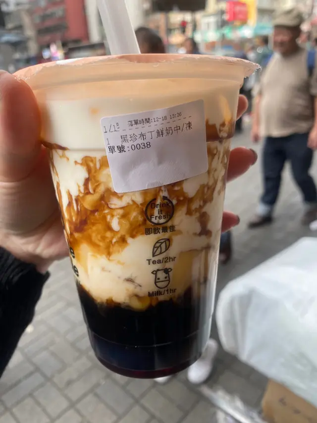 佢嘅黑糖珍珠鮮奶啱啱攞上手個底係仲好熱🥵 唔攪勻就飲嘅可以飲到黑糖珍珠同明治奶冰火交融嘅感覺都幾得意。攪完之後,杯野唔會死甜唔會太甜,珍珠煙韌度啱啱好,成杯好夾好飲👍🏻查看更多