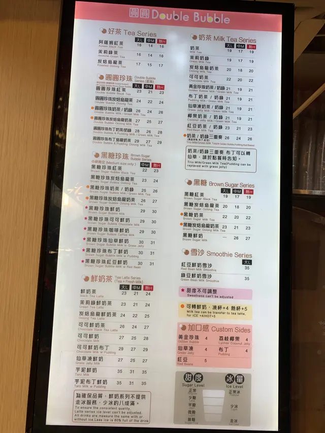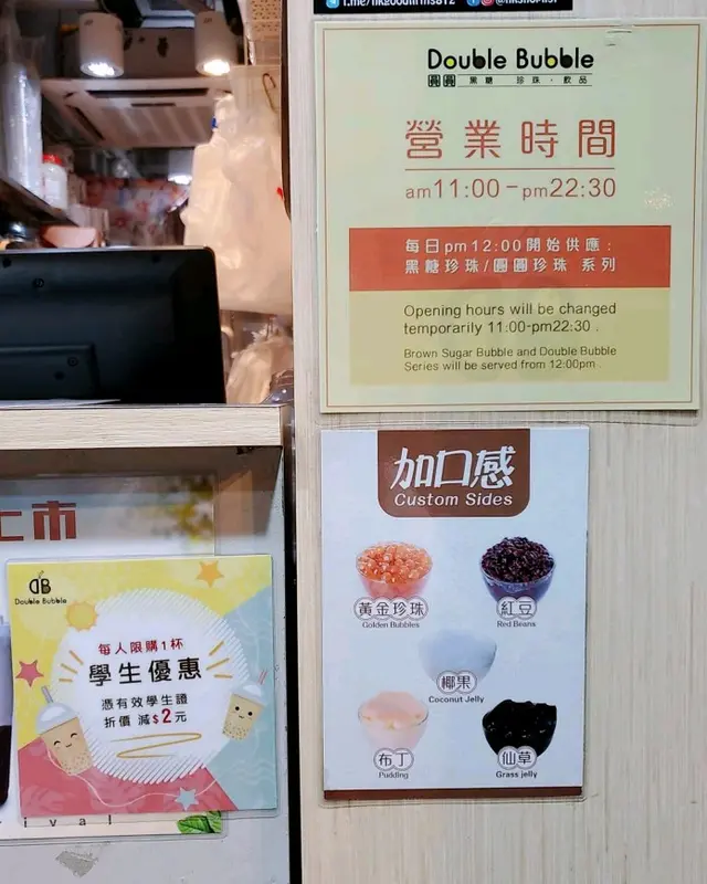 呢間dubble bubble 成日都大排長龍一黎好飲二黎服務態度好三黎良心小店一入黎深水埗好中意飲呢間位置係深水埗西九龍中心對面勁方便買完可以入去行最中意飲呢間既黑糖珍珠鮮奶 正常店員勁好人提醒我要搞好先飲珍珠好有口感好q彈 數量亦唔少而且粒粒分明 唔會痴住哂一齊絕對係你飲完d鮮奶都唔食完珍珠黑糖唔係死甜 但都有一定甜度總體面言係好好飲抵咁多人排隊幫親唯一唔係咁好既係因為太多人幫襯所以要等好耐重點係有學生證可以平兩蚊查看更多