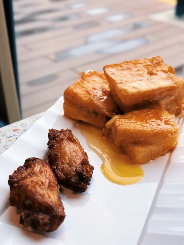 下午茶既一口西多士配雞翼 一口西多士炸得好好食,外層炸得酥,麵包都軟熟,糖漿係海量,好好食雞翼就有點油,炸得比較乾同硬 滑蛋叉燒飯做得幾好食,唔比出名既冰室差 滑蛋炒得好好食,半熟狀態軟綿綿,香濃蛋香 叉燒正常發揮,大部分都淋,肥瘦算係平均,mix埋燒味豉油成碟飯好惹味 另一個雞扒煎蛋飯就好普通,煎蛋係用模煎,冇荷包蛋既燶邊 雞扒都係普普通通,唔係好入味,唔算肉嫩不過好在冇雪藏味既 呢間餐廳算係人氣比較旺,周末下午茶時間都差唔多滿座如果坐到窗邊卡位都幾正,好似去左cafe咁不過服務就唔好expect太多,就係正常茶記 ,但係D野食都等左好耐,特別係個西多,差唔多食完2碟飯先黎餐廳太大但人手唔夠,成日都叫唔到人黎查看更多