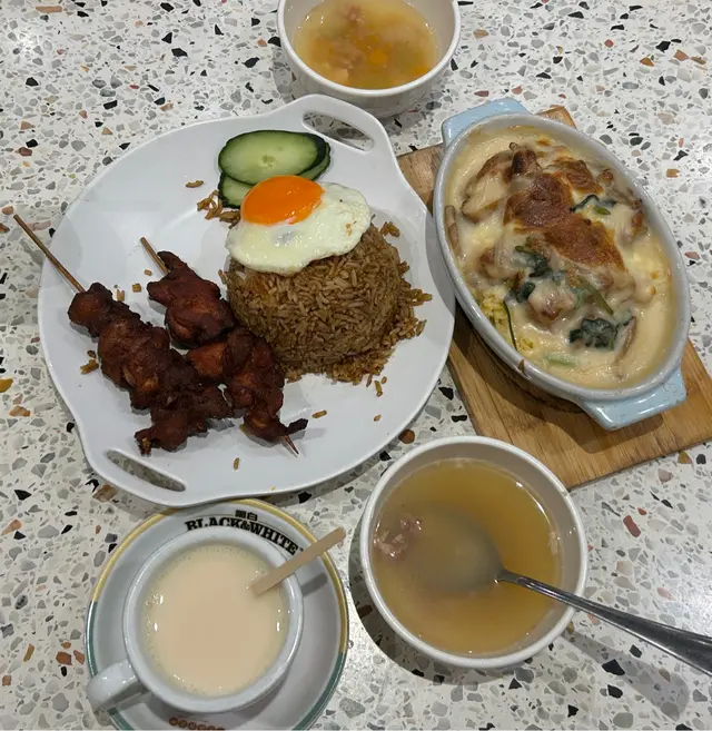 印尼炒飯串燒都唔錯 雖然看上去非常乾 。炒飯有兩隻大蝦 幾粒肉 然後就沒有然後 。焗菠菜雞皇飯如果食客想有蔬菜🥦🥬平衡一下你的晚飯唔好考慮這盤焗菠菜雞皇飯 因為只有四條幼少得可憐嘅菜查看更多