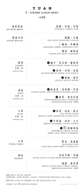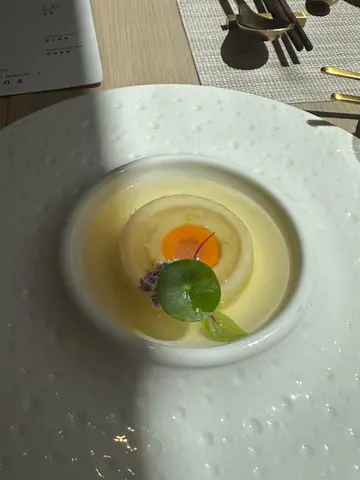 一直好想試下呢間新派混合素菜餐廳,但因為價錢問題遲遲都未去試,咁啱今年圓入選左香港米芝蓮指南,加上親人生日,終於的起心肝去試一試。我地3個人,仲可以一次過試晒 lunch menu d 款式添!🔸🔹🔸🔹🔸🔹🔸🔹🔸🔹🔸🔹🔸🔹餐前小食 (碧根、醃茴香、Wasabi 腰果)|⭐⭐⭐俾左2份我地,第一次接觸茴香呢種食材,口感好爽脆,3款小食整體感覺都唔錯。(飲品) 菠蘿.甘筍.雪梨|⭐⭐⭐⭐⭐好清甜好 fresh,菠蘿同雪梨一d酸味都無,d食材好新鮮好靚。美中不足嘅係份量太細杯,大啖d飲應該一啖都飲得晒,如果可以大杯返少少就好啦~🤣甜醋.天桃|⭐⭐⭐⭐用甜醋整成啫喱,加埋天桃粒,用脆米盞裝住,酸酸甜甜咁,好開胃。個人認為就咁用玻璃杯裝會好d,脆米盞對個菜式黎講加唔到分,有少少搶左左天桃d味同口感。醃漬.芥蘭頭|⭐⭐⭐採用韓式醃泡菜嘅方法去醃芥蘭頭,醃得唔太均勻,有d無乜辣,有d又太辣🥵。如果唔睇 menu,真係會以為自己食緊醃白蘿蔔🤣。欖菜.螺絲卷|⭐⭐⭐螺絲卷有兩款,一款蒸、一款炸。餐廳員工教我地要順住螺絲紋慢慢撕黎點欖菜醬食,務求食到多d醬。欖菜醬無想像中咁咸,食落去幾creamy幾滑。炸螺絲卷偏油,配上欖菜醬略嫌少膩。柚子.苦白菜.脆西米|⭐⭐⭐用左泰式肉碎生菜包嘅概念去設計呢道菜。柚子配上苦白菜感覺好清新、好 juicy。柚子配脆西米個口感好得意,脆卜卜。昆布.雪燕.瓜甫|⭐⭐⭐菜式好新穎。用左幾款瓜去砌成瓜甫,配埋昆布同雪燕熬成嘅高湯,感覺好滋潤。藤椒.萵苣|⭐⭐⭐將藤椒磨成粉,藤椒粉食落好麻,無苦澀味,可惜配上新鮮萵苣,突顯唔到藤椒味,剩係食到萵苣味。(湯) 仙翁米.老菜甫.冬瓜|⭐⭐⭐⭐⭐概念黎自冬瓜盅,冬瓜粒配上夜香花、杞子、仙翁米、老菜甫同蓮子,好滑甜滋潤。(湯) 松茸.菊花浮萍 (+$68)|⭐⭐⭐⭐⭐呢道菜應該算係店家招牌菜式之一。師傅展示左佢嘅細膩刀工,將嫩豆腐切到好似絲咁幼,成品好似一棵綻放嘅菊花。配上濃香嘅松茸湯,視覺、嗅覺同味覺都有頂級享受。鼓香.涼瓜.素方|⭐⭐⭐⭐⭐本來以為呢道菜個主打係素方,點知食完最驚喜係泰國涼瓜釀珍珠米,珍珠米用高湯醬汁等熬煮過,加埋泰國涼瓜個甘味,真係一絕。但個份量又係太少,得1粒咁大把... 素方就係將菇豆等食材,用醬汁整到成舊啫喱咁,睇落好似素東坡肉咁。牛肝菌.茴香.土豆|⭐⭐⭐⭐味道唔錯,但無乜特別,食完涼瓜食佢就覺得比下去。就咁用醬汁佐牛肝菌、茴香同薯仔。焗釀啡菇|⭐⭐⭐⭐將多種菌類切絲,配上芝士來焗釀大啡菇,比一般焗釀啡菇味道豐富。野菜.荷葉飯|⭐⭐⭐⭐⭐用蓮藕、芹菜、脆米同多穀米一齊煮,口感豐富,並以荷葉墊底,有淡淡荷香,色香味俱全。(甜品) 焦糖薑汁豆腐雪糕|⭐⭐⭐⭐⭐呢道菜真係要讚一下餐廳員工! 佢地知道我地有人生日,主動幫我地改晒個甜品做焦糖薑汁豆腐雪糕