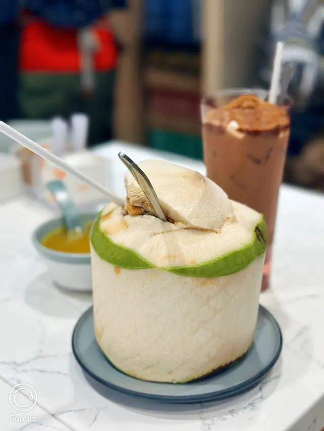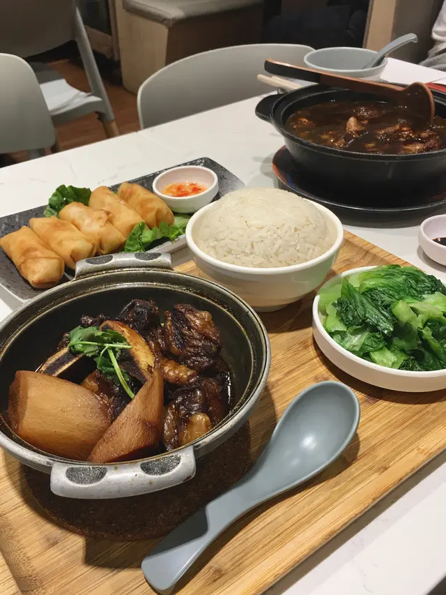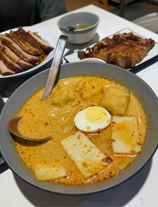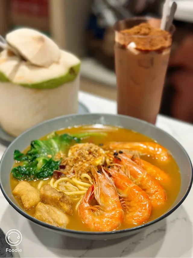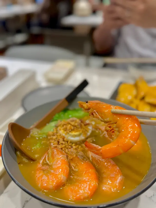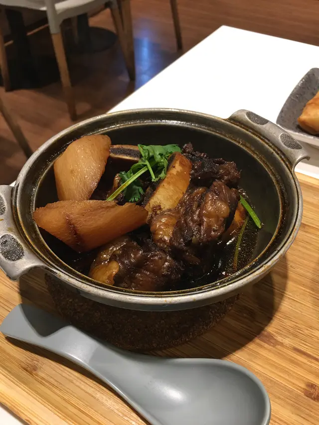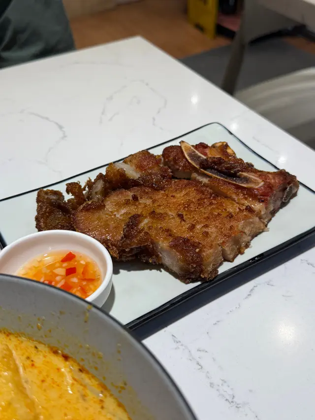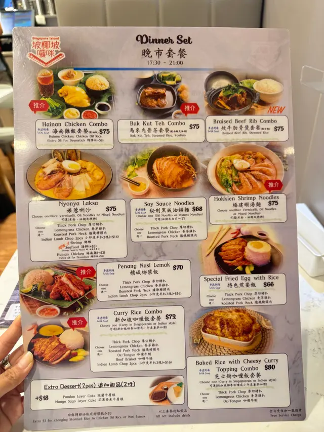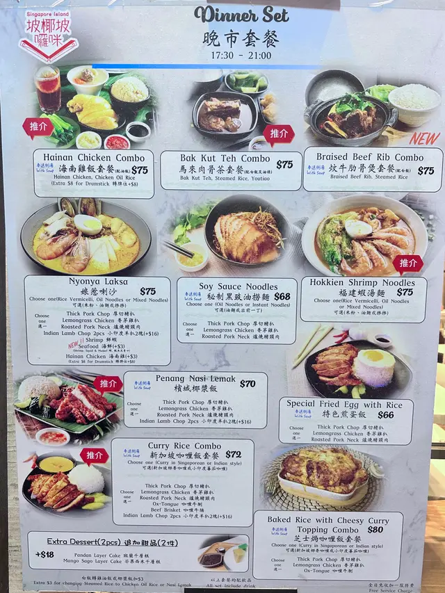 二訪灣仔「坡椰坡囉咪」,依間餐廳果然係區內人氣小店吖,去到晚上8點,依然座無虛席,需要排一陣間隊,不過店員好快已經安排到入座,另外,店員好有禮貌,服務好好,因為已經過了餐廳關門時間,但我仍然未食完所有食品,所以店員細心地免費提供了一些外賣包裝俾我,仲親自幫我入好食品、飲品,非常窩心。馬來肉骨茶套餐配椰漿飯及油條(單點$78),黑湯肉骨茶飲落藥材味道濃郁,但不苦,因為加入了桂圓、杞子去熬煮,所以飲落帶點甘甜;一字排肉質軟腍,食落好入味,配以辣椒黑醬油食用,味道正宗;冬菇食落好Juicy,配菜包括有生菜、油條;椰漿飯,口感軟硬適中,椰漿味道淡香。福建蝦湯麵摻摻(單點$75),海蝦好大隻,肉質彈牙,味道鮮甜;豬油渣食落油脂味濃,摻摻採用米粉、油麵製作,口感好豐富;略嫌湯頭味道較淡,但勝在飲落有鮮味,配料包括有烚蛋、生菜。馬拉盞炒菜(單點$62),表面鋪滿炸蒜、蒜蓉、辣椒,通菜口感爽嫩,食落好惹味。蒜香雞翼(單點$60),即叫即炸,雞翼肉味濃香,雖然在整碟雞翼裏看不到太多蒜蓉,但因為在醃雞翼時加入了大量蒜蓉醃製,所以蒜香味重,食落好香口。凍爆泡拉茶(跟餐$15),手拉拉茶,泡沫口感細密,淡奶比例多,飲落口感幼滑,茶味濃香。凍椰奶咖啡(跟餐$9),採用椰奶、椰子糖漿製作,味道清甜。…查看更多