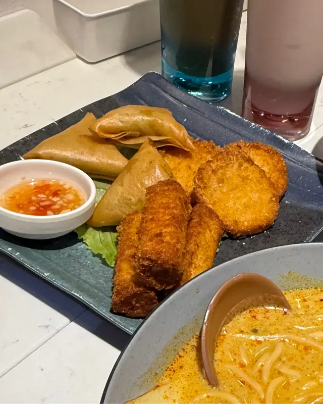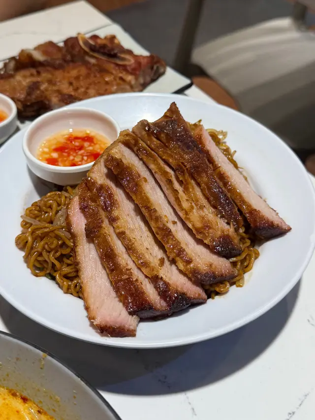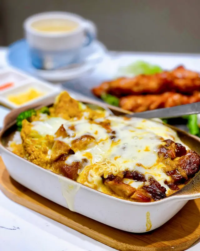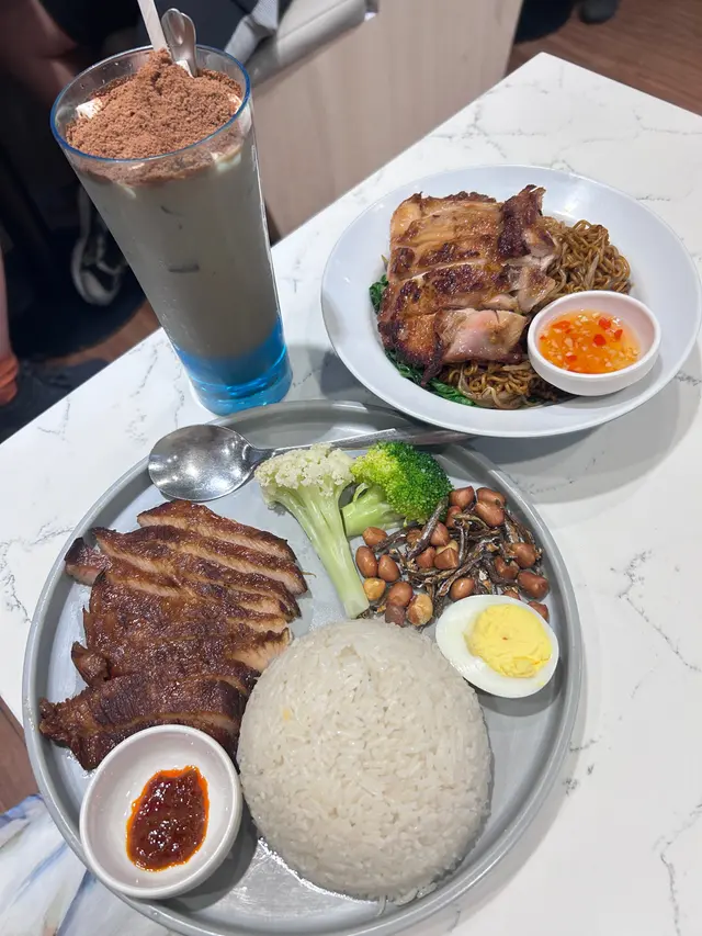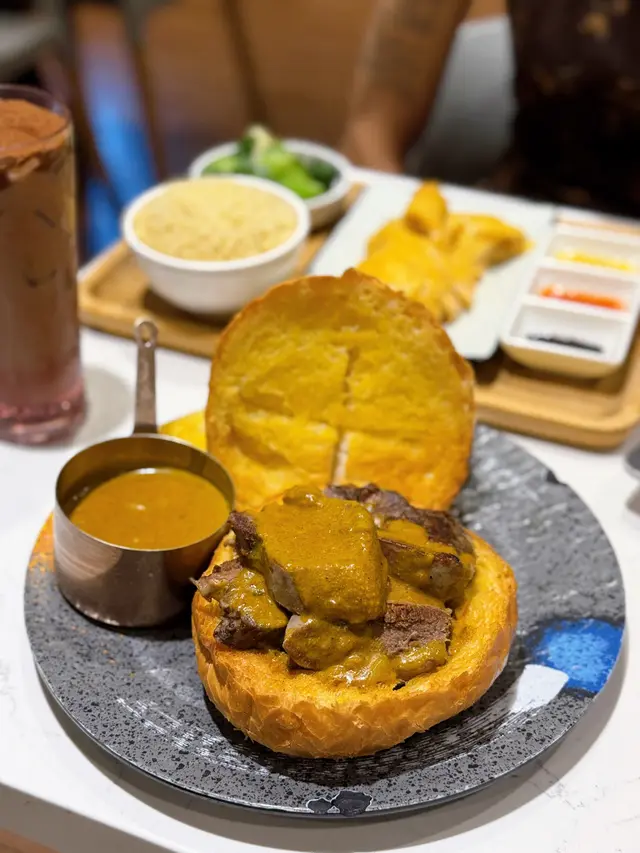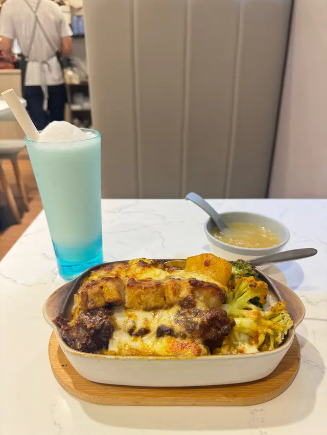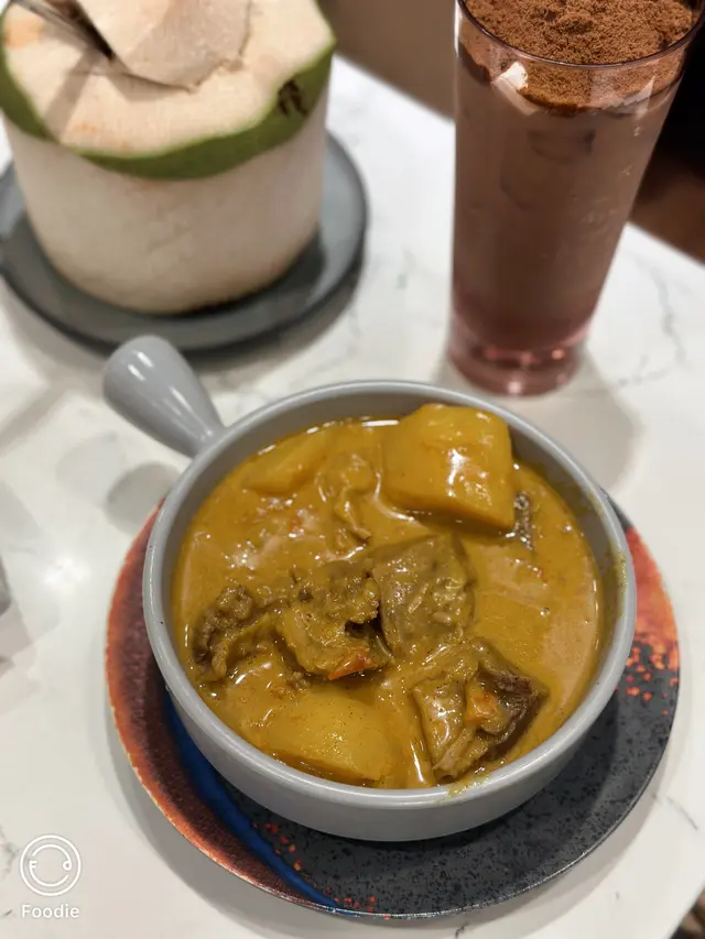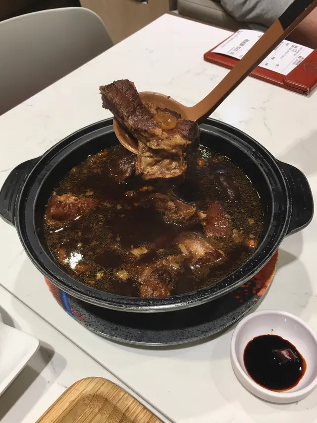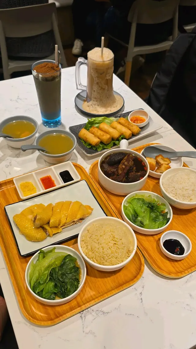 二訪灣仔「坡椰坡囉咪」,依間餐廳果然係區內人氣小店吖,去到晚上8點,依然座無虛席,需要排一陣間隊,不過店員好快已經安排到入座,另外,店員好有禮貌,服務好好,因為已經過了餐廳關門時間,但我仍然未食完所有食品,所以店員細心地免費提供了一些外賣包裝俾我,仲親自幫我入好食品、飲品,非常窩心。馬來肉骨茶套餐配椰漿飯及油條(單點$78),黑湯肉骨茶飲落藥材味道濃郁,但不苦,因為加入了桂圓、杞子去熬煮,所以飲落帶點甘甜;一字排肉質軟腍,食落好入味,配以辣椒黑醬油食用,味道正宗;冬菇食落好Juicy,配菜包括有生菜、油條;椰漿飯,口感軟硬適中,椰漿味道淡香。福建蝦湯麵摻摻(單點$75),海蝦好大隻,肉質彈牙,味道鮮甜;豬油渣食落油脂味濃,摻摻採用米粉、油麵製作,口感好豐富;略嫌湯頭味道較淡,但勝在飲落有鮮味,配料包括有烚蛋、生菜。馬拉盞炒菜(單點$62),表面鋪滿炸蒜、蒜蓉、辣椒,通菜口感爽嫩,食落好惹味。蒜香雞翼(單點$60),即叫即炸,雞翼肉味濃香,雖然在整碟雞翼裏看不到太多蒜蓉,但因為在醃雞翼時加入了大量蒜蓉醃製,所以蒜香味重,食落好香口。凍爆泡拉茶(跟餐$15),手拉拉茶,泡沫口感細密,淡奶比例多,飲落口感幼滑,茶味濃香。凍椰奶咖啡(跟餐$9),採用椰奶、椰子糖漿製作,味道清甜。…查看更多