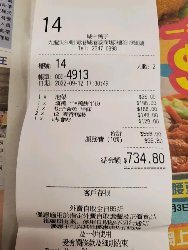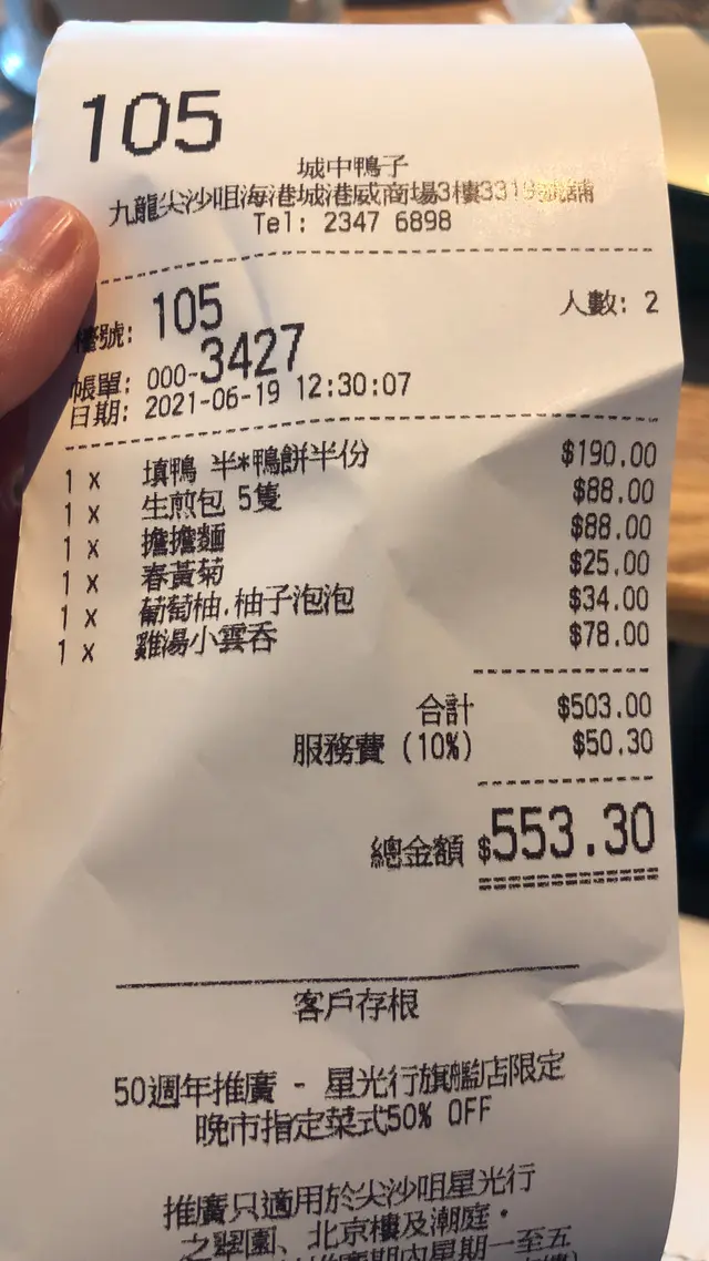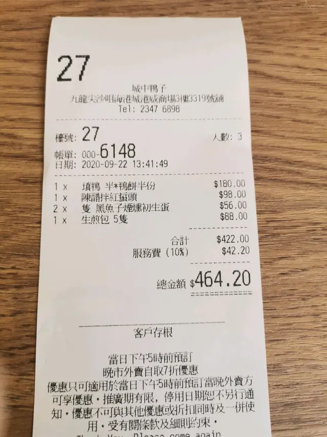 城中鴨子 (尖沙咀) 網址: https://s.openrice.com/QrbS0upO900 地址: 香港尖沙咀廣東道3-27號海港城港威商場3樓3319號舖 電話: +852 23476898