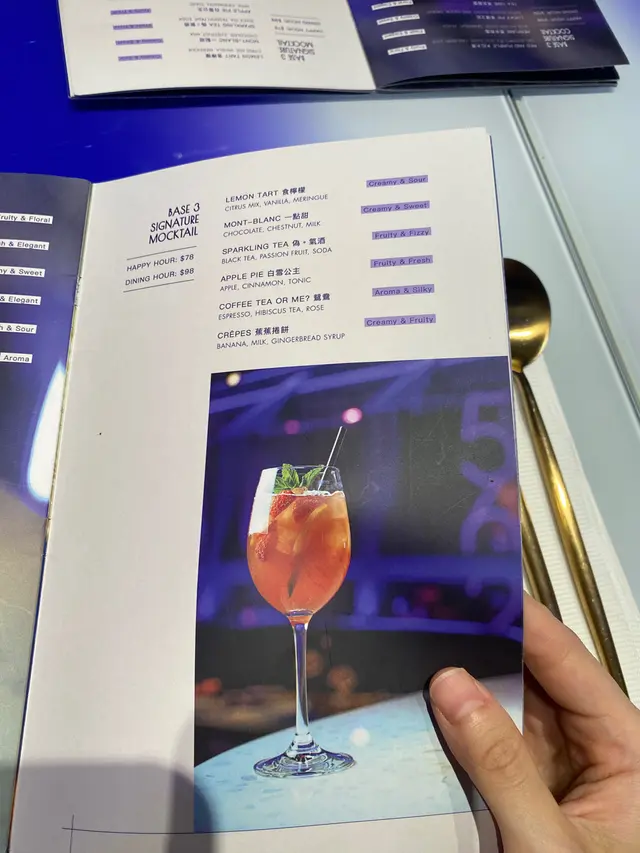 就黎生日,BBF就帶我黎呢間好有格調餐廳,地點非常方便,在旺角近油麻地方向。BBF已經去過另外兩間店舖,亦表明食物質素唔錯、擺盤精緻。全間餐廳以紫色為主題,裝潢簡約帶點型格,座位舒適,非常適合慢慢談天的地方。基地叄 重奏 $138餐牌上見到眼球已被吸引,三層銀色架分別擺放了不同食材,最上層是風乾火腿配蜜瓜,第二層是海鮮刺身,有蝦、帶子、北寄貝等,最底層是法式田螺配軟滑薯蓉。我們由上而下品嚐,每層口感不同,一個料理可以品嚐三種口味 。基地海鮮湯 $98招牌海鮮湯,喝下去很濃郁,湯內含有大量海鮮食材,包括帶子、蜆肉、大蝦、魷魚等,配上香脆法包十分滋味。基地薄餅 $158薄餅可自選三款食材:分別是煙三文魚、煙燻豬面肉、沙樂美腸、辣肉腸、車厘茄、雞肉、野菌、墨西哥辣椒、風乾火腿。而我們選擇了車厘茄、野菌、風乾火腿,餅底厚度適中配料份量十足配上啖啖芝士,餅邊脆口、用料新鮮,非常滿足,十分推介點此菜式!龍蝦西班牙海鮮飯 $238足料龍蝦海鮮飯,配料包括半隻龍蝦、蜆肉、蟹肉、魷魚等,賣相精緻,材料豐富。Perfume 香水有毒 Happy Hour $108/ Dinning Hour $128Rose infused Vodka, Grapefruit, PeachBBF點了此Signature Cocktail,清爽酸甜口感,非常易入口,酒鬼要注意,酒精不算突出。焦糖抹茶鮮奶 $58/ Dinning Hour $68抹茶味非常濃郁,雖然是焦糖,但甜度適中,口感純滑,抹茶愛好者必試!總括而然,食物水準一流,店內環境舒適,唯一美中不足的是廁所環境惡劣,有異味。慶祝生日、情侶、兄弟姐妹談心好地方。📍旺角彌敦道558-560號譽發廣場1樓…查看更多