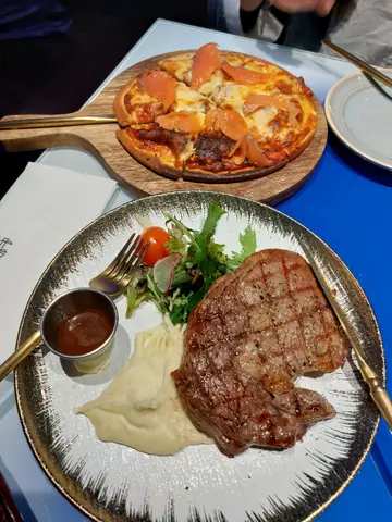 今次同朋友食飯去咗呢間裝修幾特別嘅餐廳!🥩碳烤安格斯肉眼肉眼叫咗5成熟,用咗碳烤烹調,食落軟腍之餘又香口但肉味就偏淡。除咗肉眼外,亦都附上薯蓉同沙律菜,正常發揮。 🍝龍蝦黃金意大利粉意粉醬汁濃稠,好香鹹蛋黃味,而且仲會見到粒粒鹹蛋黃,意粉煮到軟硬適中,龍蝦夠大隻,食落啖啖肉。🐟玻璃紙焗比目魚用玻璃紙包住比目魚同檸檬一齊焗,鎖水之餘又可以keep到溫度,魚肉食落有檸檬香氣,同埋嫩滑唔會乾身,而且仲會有好多魚汁唔會流失。🥘龍蝦西班牙海鮮飯海鮮飯配料非常豐富,有龍蝦、蜆、魷魚桶,海鮮鋪滿哂成個飯,但米飯偏乾,食落欠缺香氣及濕潤感,唔算特別出色。🍟黑松露薯條薯條份量比想像中多,食落熱辣辣,但無咩黑松露味🙈🥤雲呢拿紫薯沙冰初頭以為隻紫薯味會好假,但飲落又ok喎,紫薯味夠濃,而且有淡淡嘅雲呢拿香又唔會過甜!🥤草莓洛神花沙冰草莓味出過洛神花,飲落幾清新開胃,仲會食到少少嘅士多啤梨果肉!食物選擇唔算好多,反而飲品款式仲多,食物價錢就比較進取,好彩上網訂位有折扣就平返啲😆…查看更多