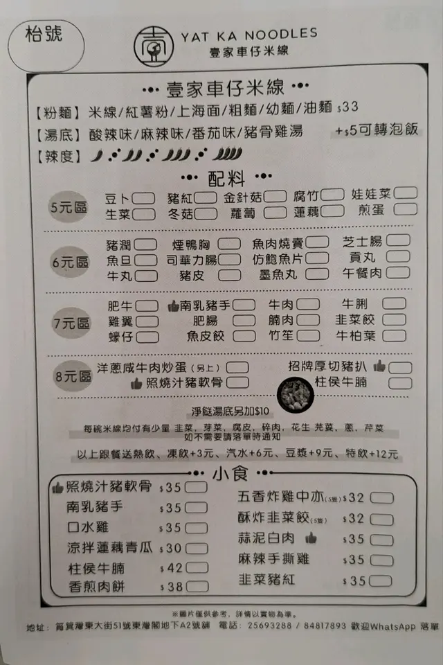 壹家車仔米線 (筲箕灣) 網址: https://s.openrice.com/QrbS04deC00 地址: 香港筲箕灣筲箕灣東大街51號東灣閣地下A2號舖 電話: +852 84817893